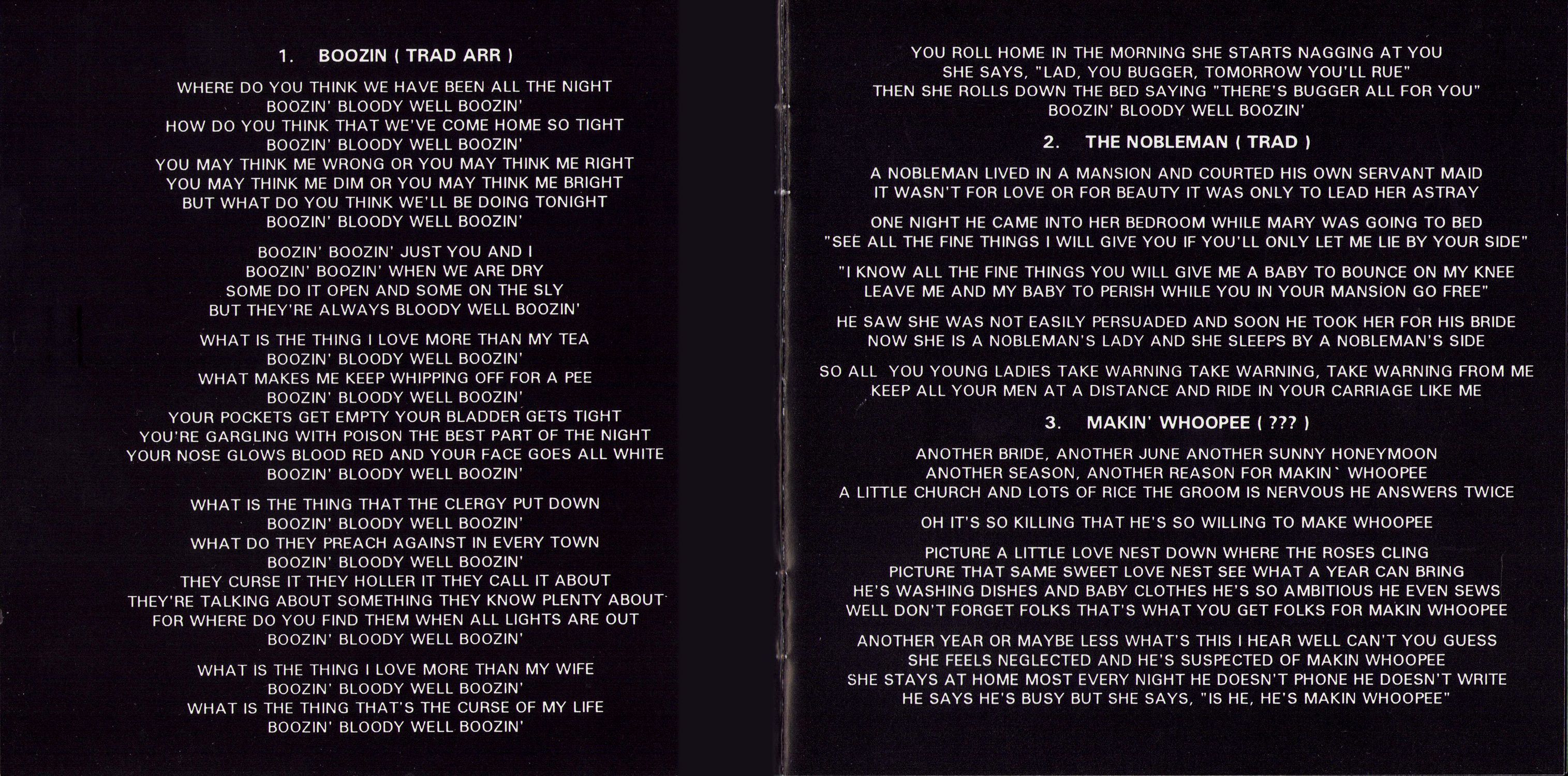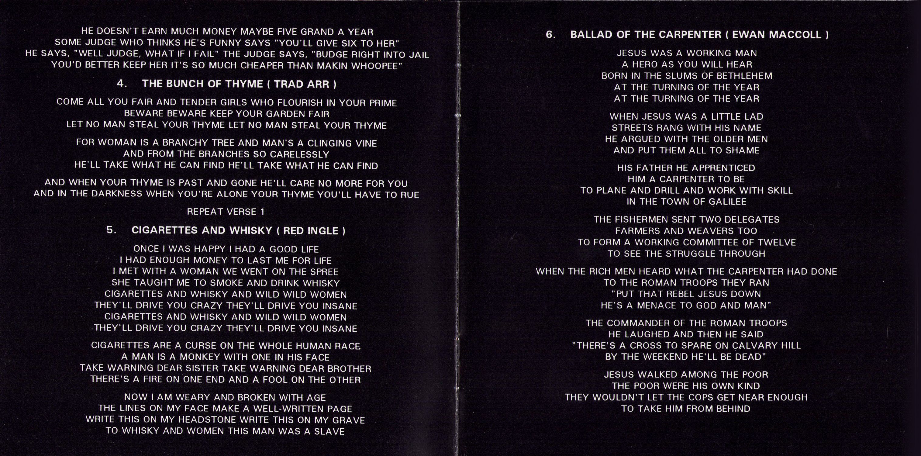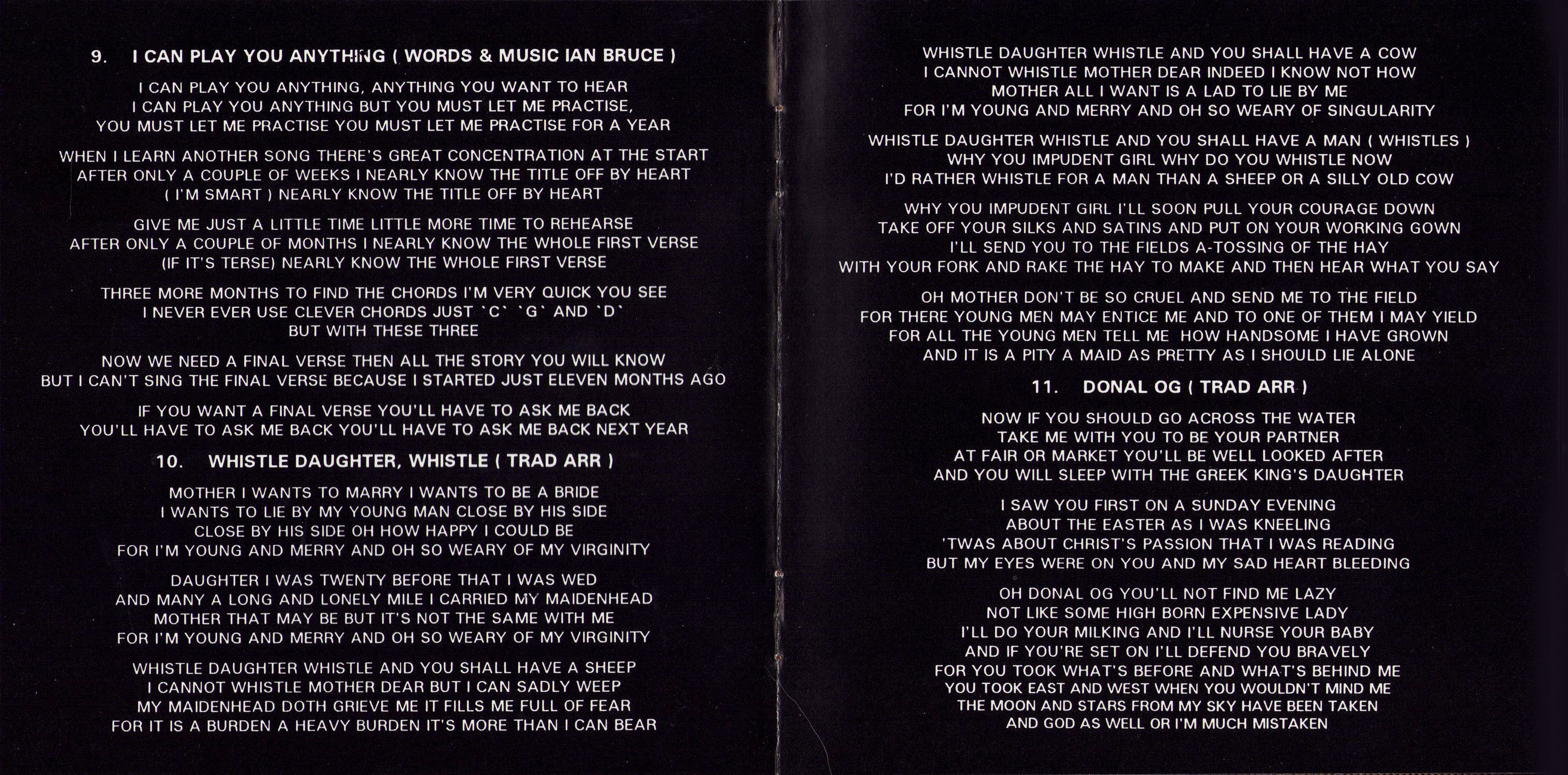 - Recorded & Produced by Dick Gaughan at The Back Room, Hart Street, Edinburgh & Redesdale Studios, Elsdon, Northumberland