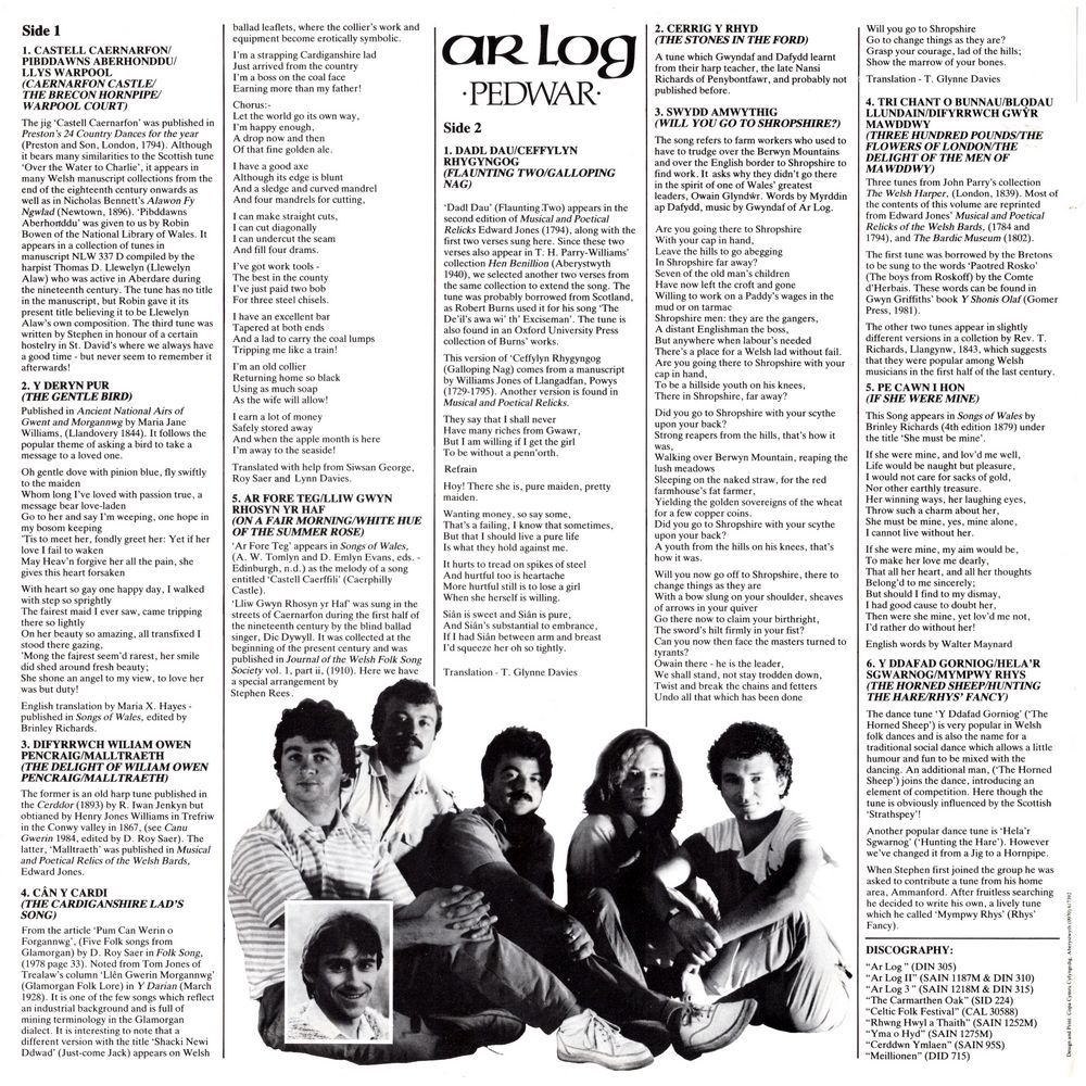 - Gwyndaf Roberts: Telyn Ben-glin, Clarsach, Gitar Fas, Llais/Knee Harp, Clarsach, Bass Guitar, Vocals