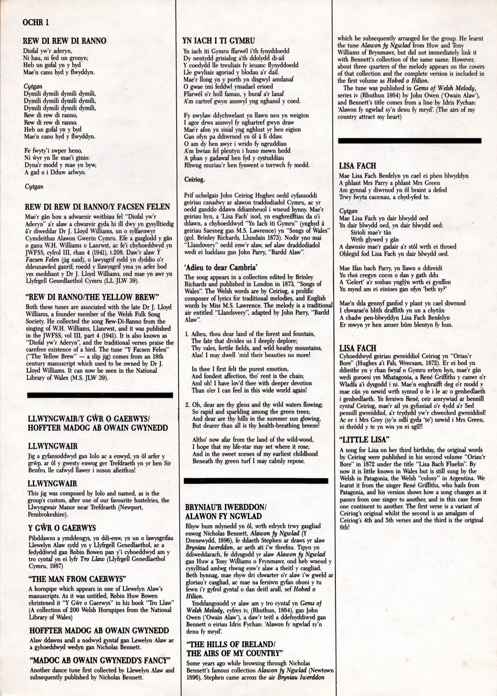 - The notation of ALAWON FY NGWLAD is taken from the cover of the collection of the same published by Nicholas Bennett in 1896.