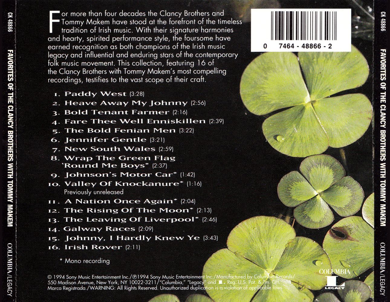 The arc of the Clancy Brothers' career spans four decades and nearly 60 albums. But by no means should they be discounted as remnants of a folk era long past. Unlike so many of their contemporaries, who have faltered in the wake of changing times and tastes, the Clancy Brothers continue to sing songs that draw and rouse crowds of all generations. They celebrate an Irish musical tradition that has resisted the rust of time precisely because it is timeless.