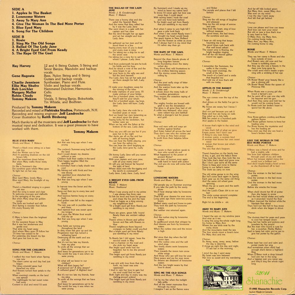 - Tommy Makem: Vocals, 5 String Banjo, Bokwhistle, Tin Whistle, and Bodhrán