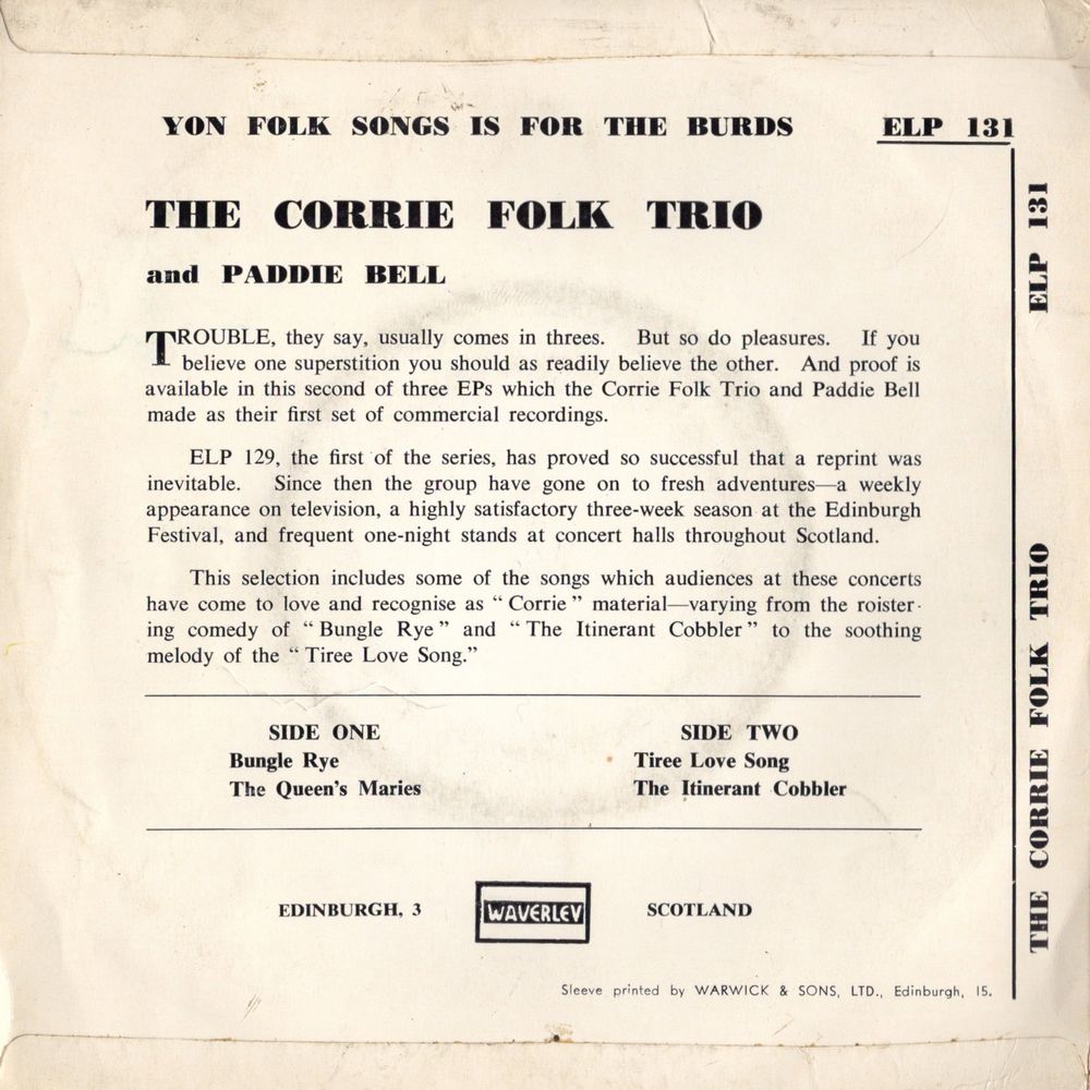 TROUBLE, they say, usually comes in threes. But so do pleasures. If you believe one superstition you should as readily believe the other. And proof is available in this second of three EPs which the Corrie Folk Trio and Paddie Bell made as their first set of commercial recordings.