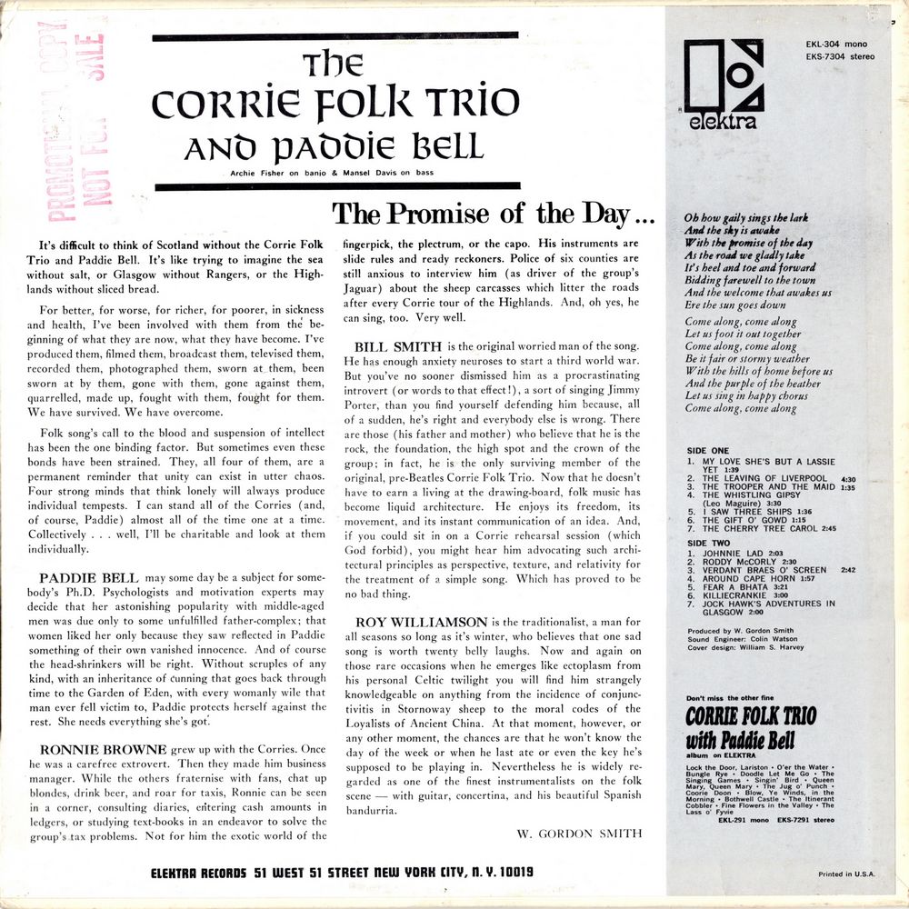 It's difficult to think of Scotland without the Corrie Folk Trio and Paddie Bell. It's like trying to imagine the sea without salt, or Glasgow without Rangers, or the Highlands without sliced bread.