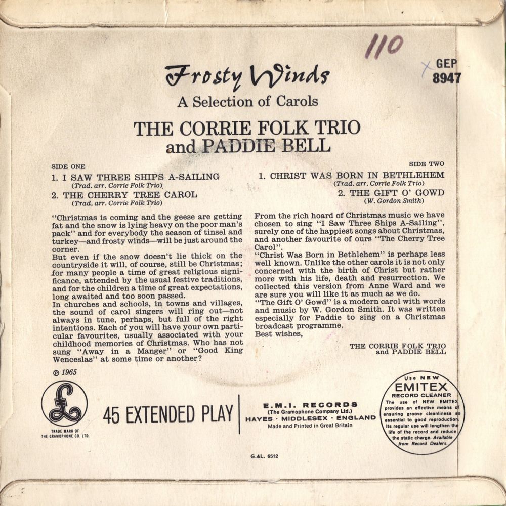 "Christ Was Born in Bethlehem" is perhaps less well known. Unlike the other carols it is not only concerned with the birth of Christ but rather more with his life, death and resurrection. We collected this version from Anne Ward and we are sure you will like it as much as we do. "The Gift O' Gowd" is a modern carol with words and music by W. Gordon Smith. It was written especially for Paddie to sing on a Christmas broadcast programme.