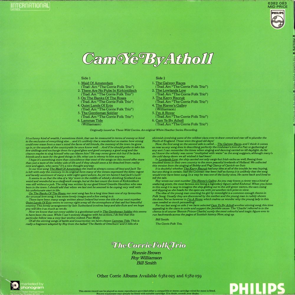 For our last song on side 2 we have selected CAM YE BY ATHOLL another stirring song, this time appealing to the clans to unite and support the Jacobite cause. The 'Charlie' referred to in the chorus is of course 'Bonnie Prince Charlie', surely the most colourful and tragic figure ever to run backwards across the pages of Scottish history. Now, sing up.