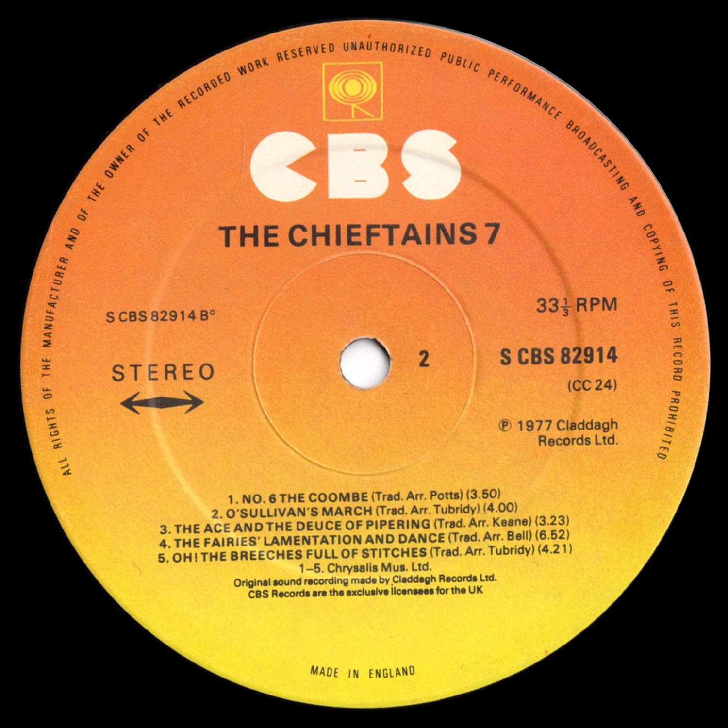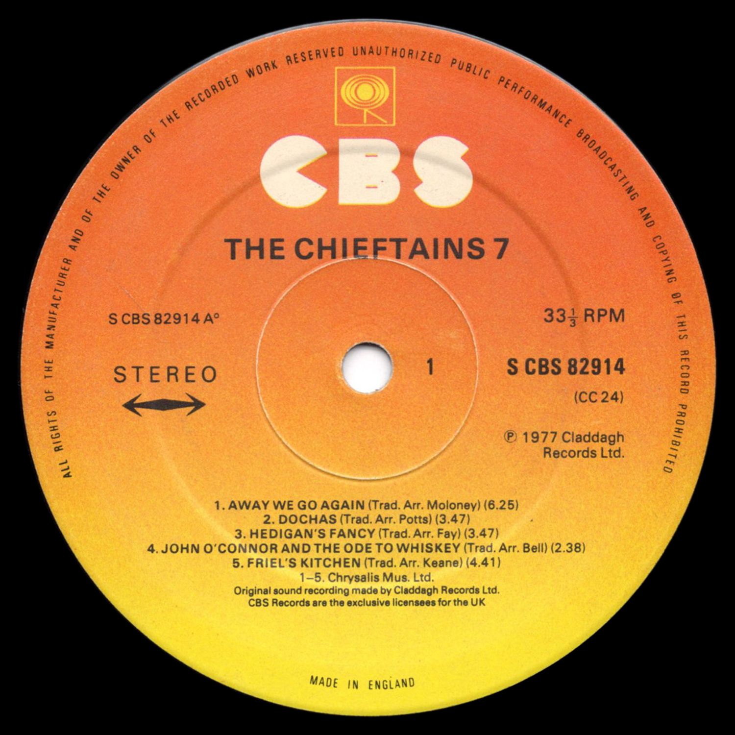 John O'Connor and The Ode to Whiskey — Derek Bell feels that these two cheerful Carolan tunes make ideal companions. Both are given the full Chieftains treatment in traditional style without obscuring the original melodic skeleton handed down to us from generations of musicians.
