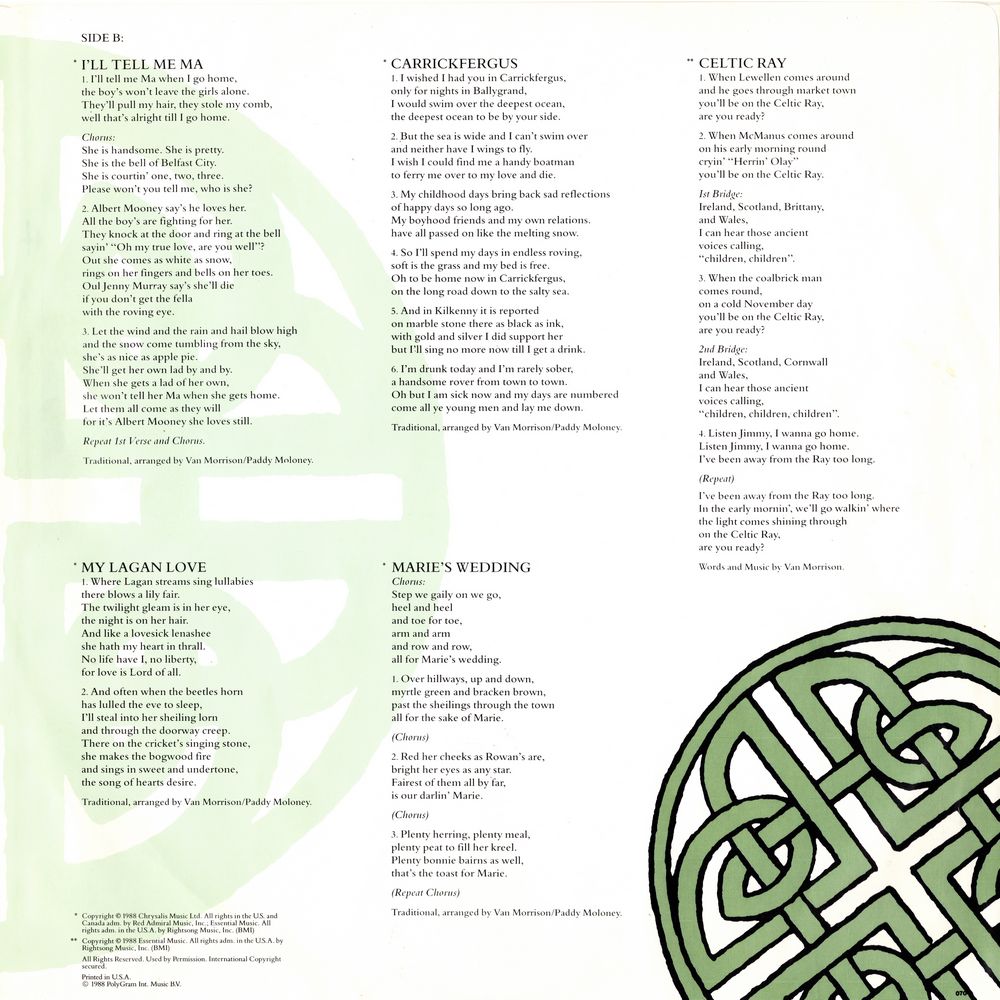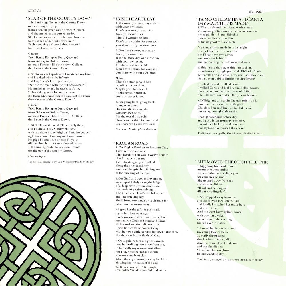 - All songs Trad. Arr. Van Morrison & Paddy Moloney, unless otherwise noted.