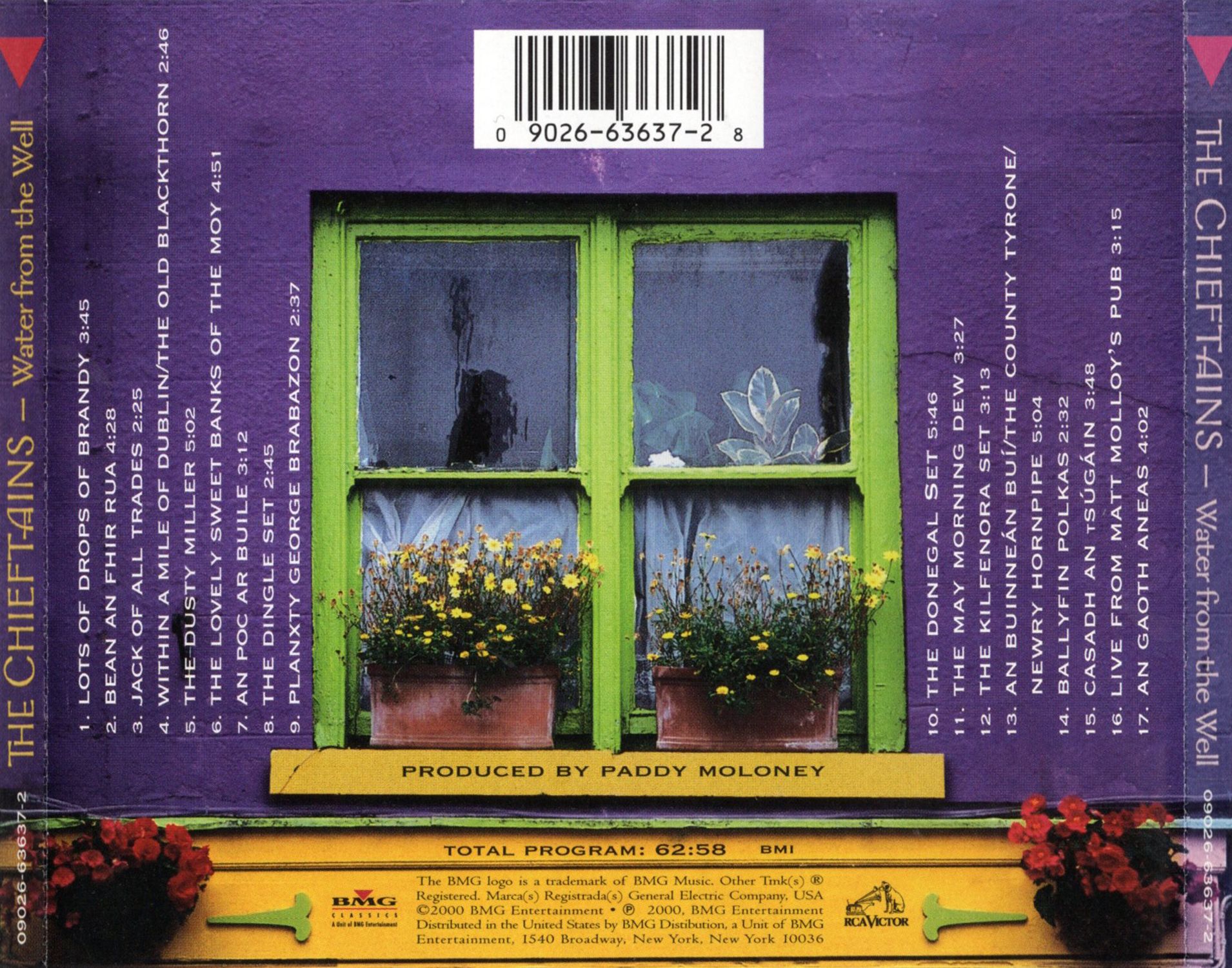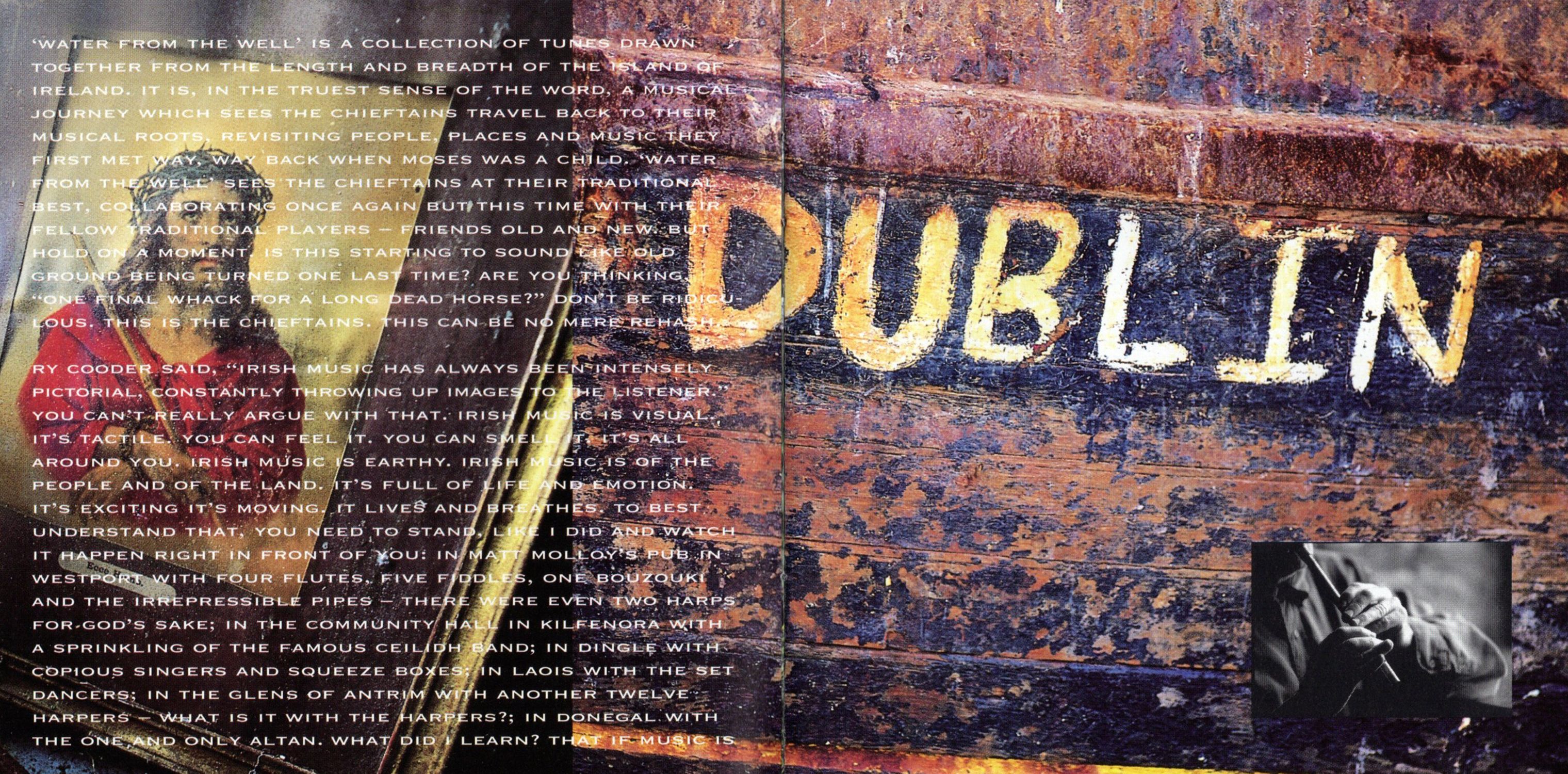 'Water from the Well' is a collection of tunes drawm together from the length and breadth of the Island of Ireland. It is, in the trues sense of the world, a musicial journey which see the Chieftains travel back to their musicial roots, revisiting people, places and music they first met way, way back when Moses was a child. 'Water from the Well' sees the Chieftains at their tradional best. Collaboration once again but this time with theirfellow tradional players — friends old and new. But hold on a moment. Is this starting to sound like old ground being turnded one last time? Are you thinking "one final whack for a dead horse?" Don't be ridiculous. This i is the Chieftains. This can be no mere rehash.
