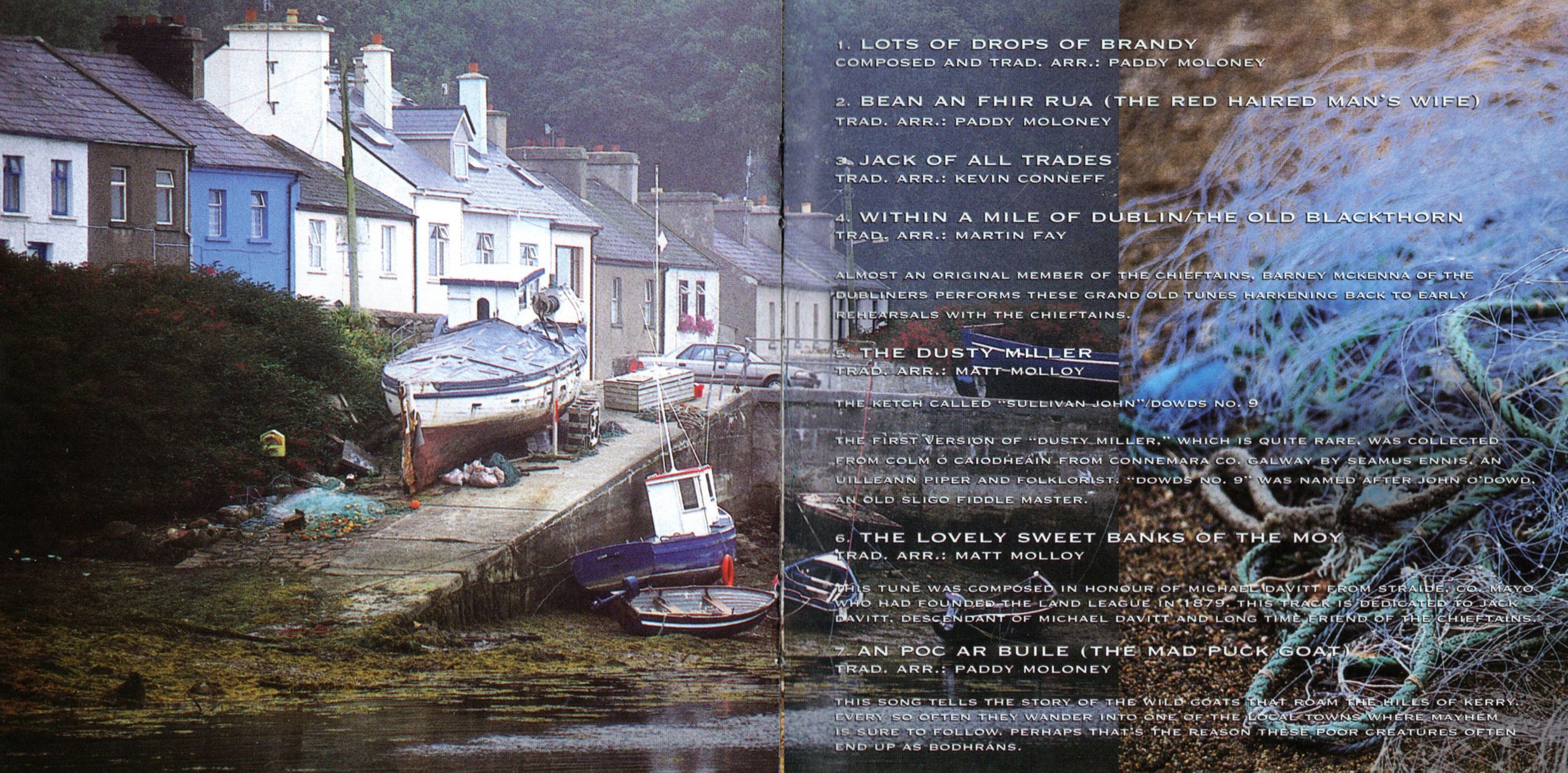 Lovely Sweet Banks of the Moy — This tune was composed in honour of Michal Davitt from Straide, Co. Mayo who had found the land league in 1879. This track is dedicated to Jack Davitt, descendant of Michael Davitt and long time friend of the Chieftains.