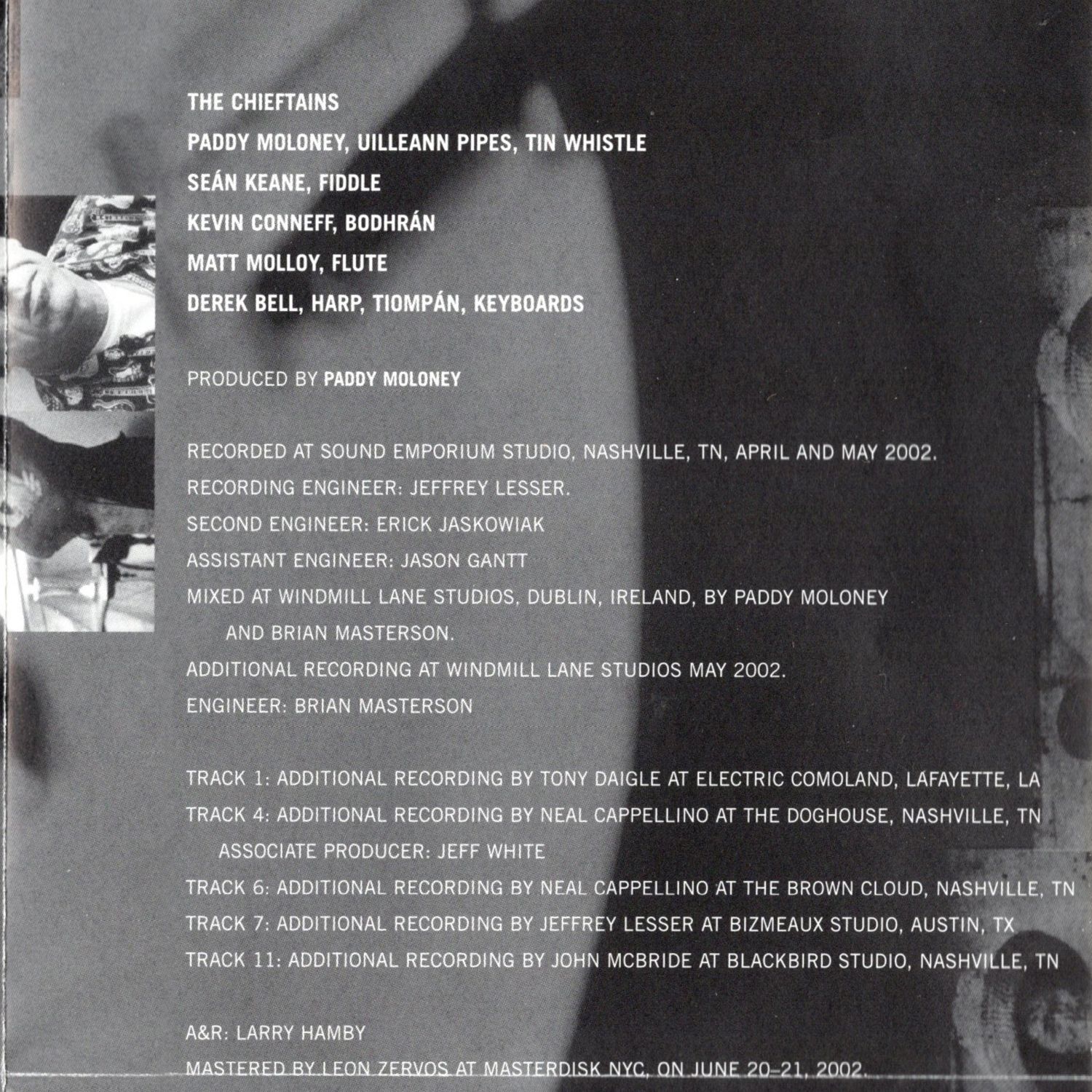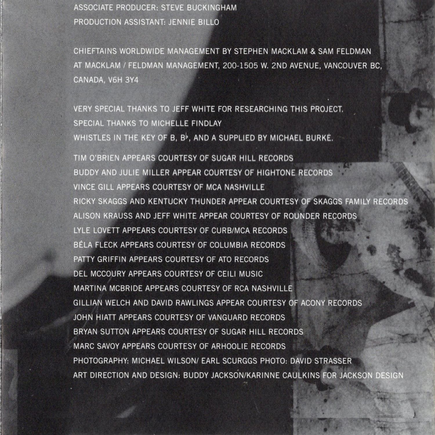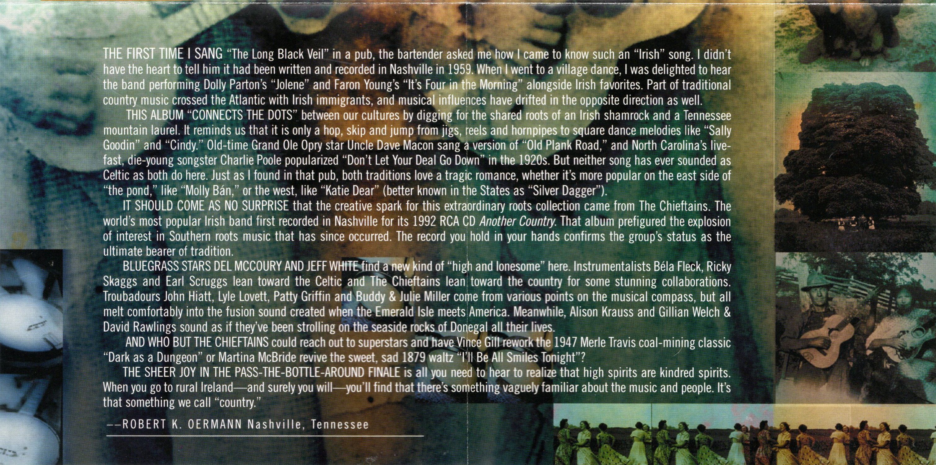 IT SHOULD COME AS NO SURPRISE that the creative spark for this extraordinary roots collection came from The Chieftains. The world's most popular Irish band first recorded in Nashville for its 1992 RCA CD Another Country. That album prefigured the explosion of interest in Southern roots music that has since occurred. The record you hold in your hands confirms the group's status as the ultimate bearer of tradition.