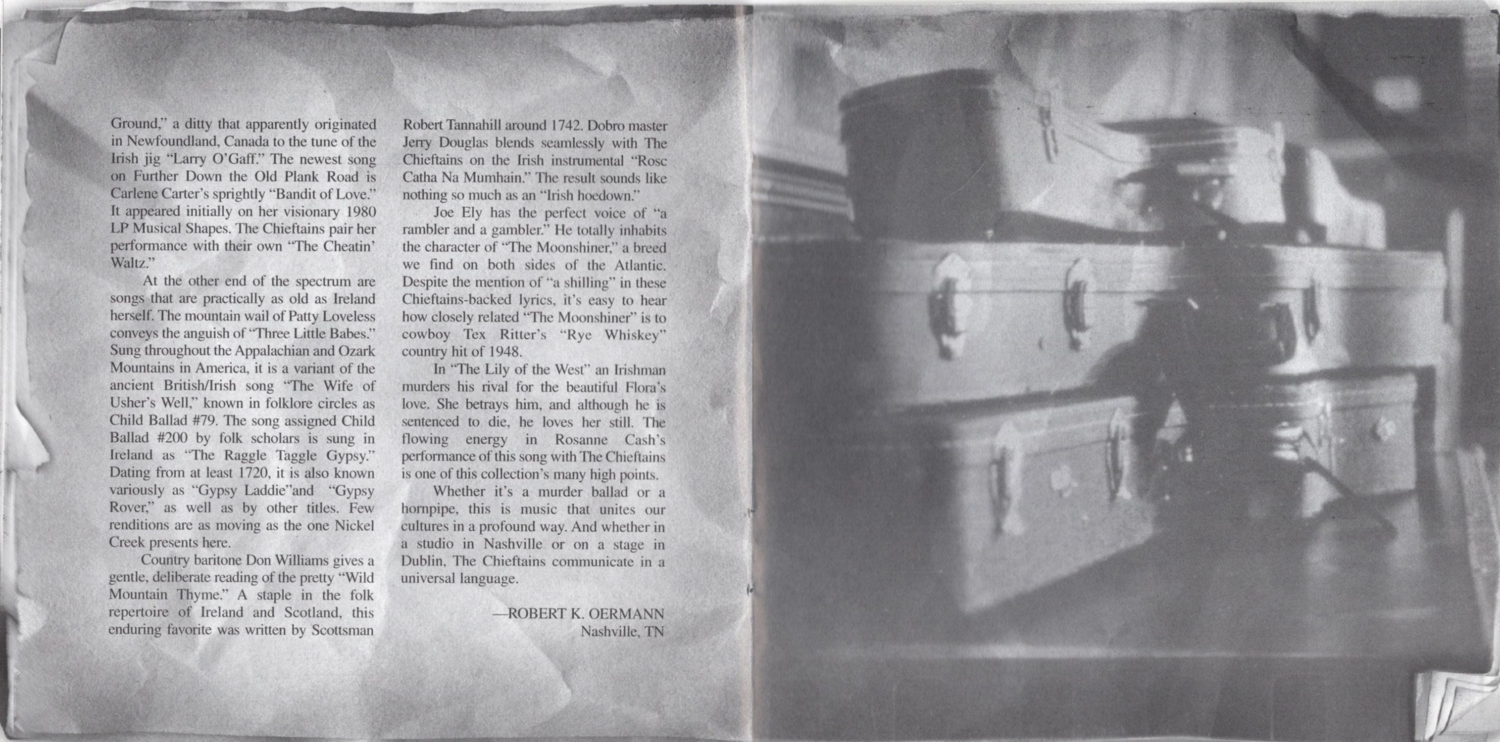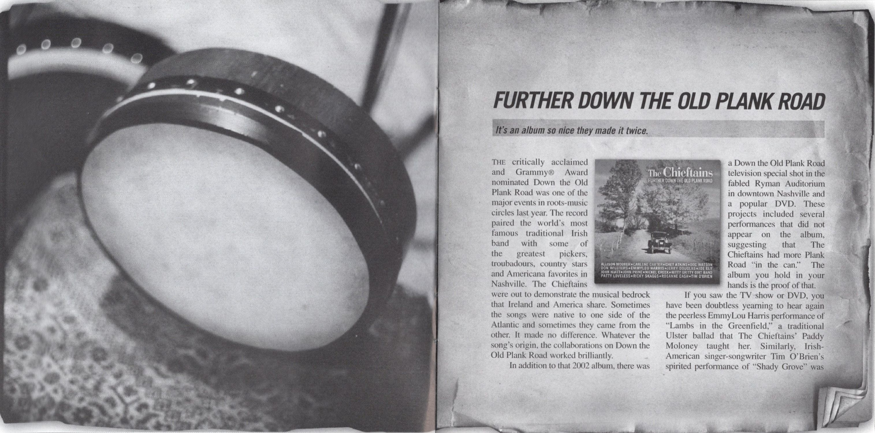 In addition to that 2002 album, there wa a Down the Old Plank Road television special shot in the fabled Ryman Auditorium in downtown Nashville and a popular DVD. These projects included several performances that did not appear on the album, suggesting that The Chieftains had more Plank Road "in the can." The album you hold in your hands is the proof of that.
