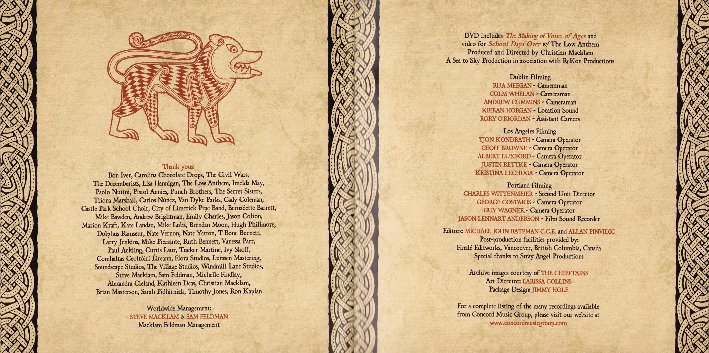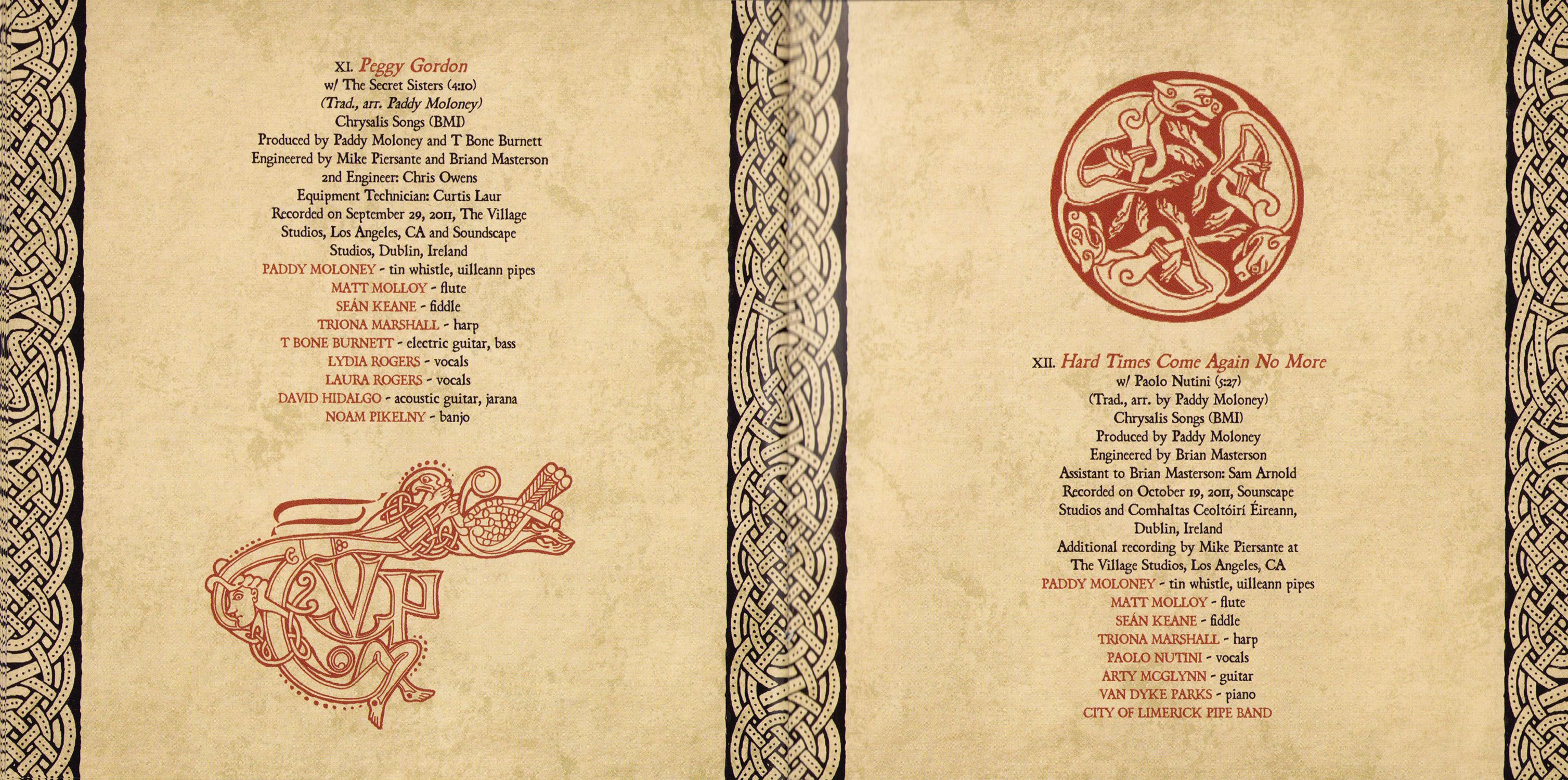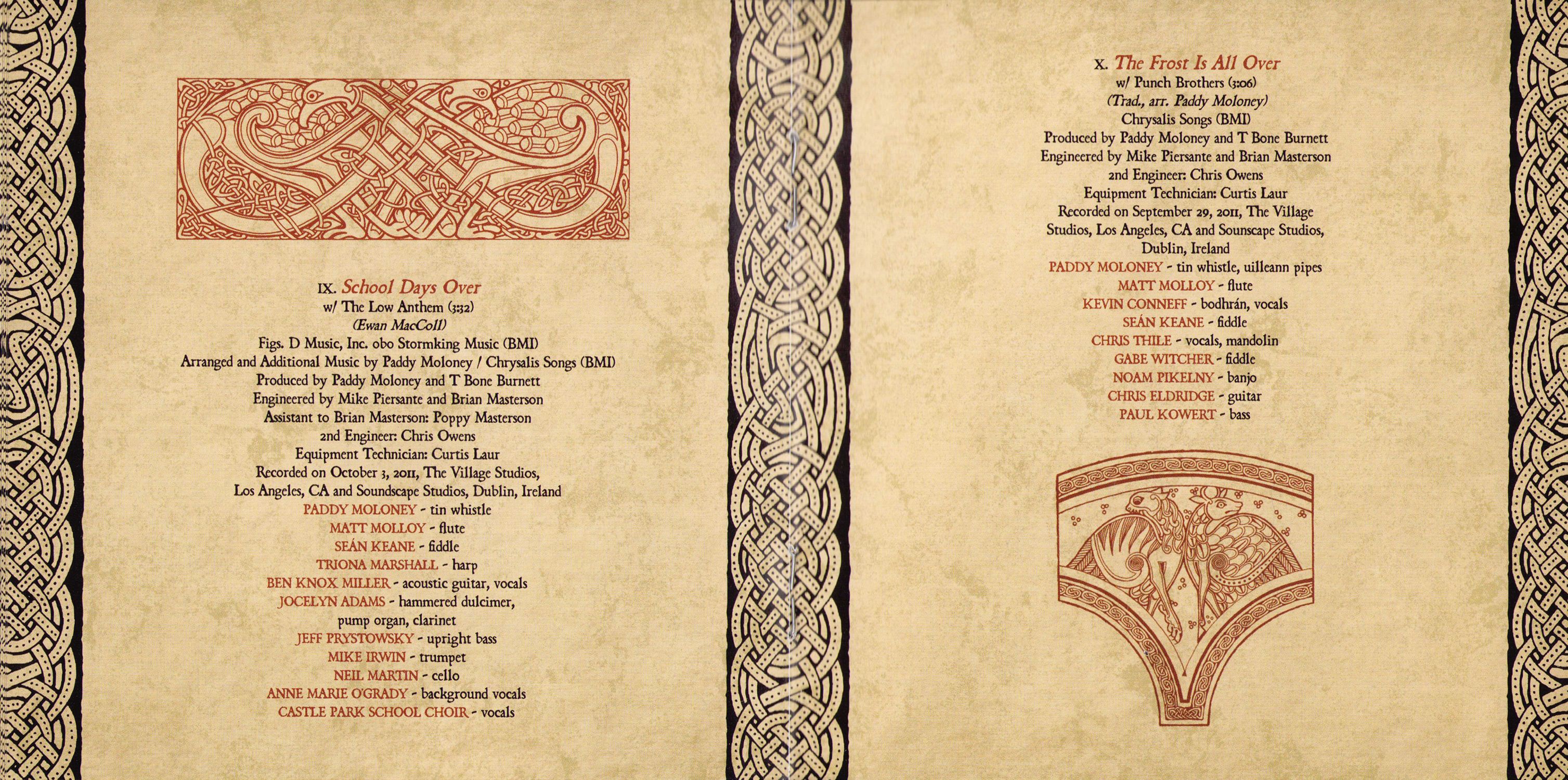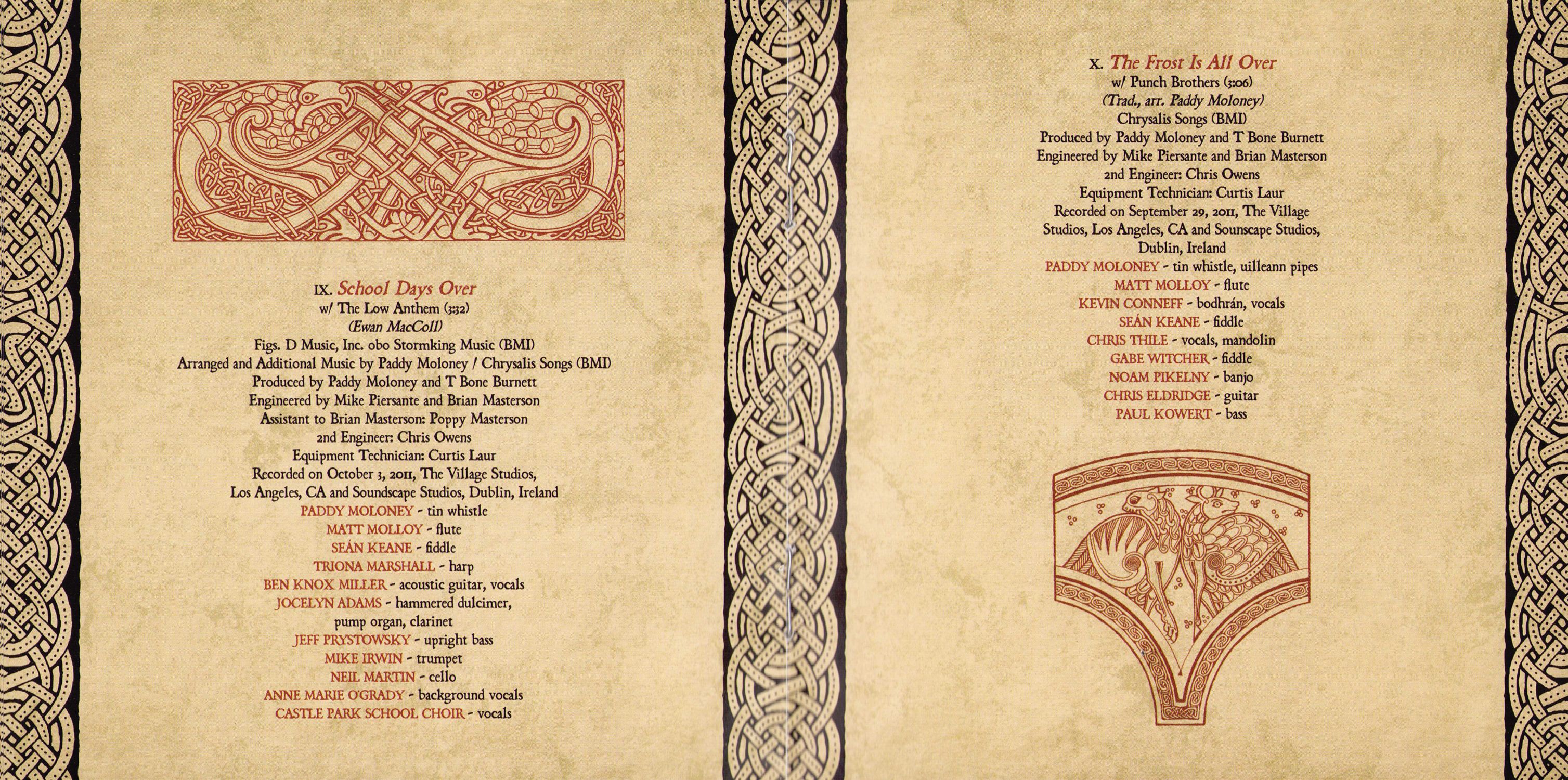 Thank yous: Bon Iver, Carolina Chocolate Drops, The Civil Wars, The Decemberists, Lisa Hannigan, The Low Anthem, Imelda May, Paolo Nutini, Pistol Annies, Punch Brothers, The Secret Sisters, Triona Marshall, Carlos Núñez, Van Dyke Parks, Cady Coleman, Castle Park School Choir, City of Limerick Pipe Band, Bernadette Barrett, Mike Bawden, Andrew Brightman, Emily Charles, Jason Colton, Marion Kraft, Kate Landau, Mike Luba, Brendan Moon, Hugh Phillmore, Dolphus Ramseur, Nate Vernon, Nate Yetton, T Bone Burnett, Larry Jenkins, Mike Piersante, Ruth Bennett, Vanessa Parr, Paul Ackling, Curtis Laur, Tucker Martine, Ivy Skoff, Comhaltas Ceoltoiri Eireann, Flora Studios, Lurssen Mastering, Soundscape Studios, The Village Studios, Windmill Lane Studios, Steve Macklam, Sam Feldman, Michelle Findlay, Alexandra Cleland, Kathleen Deas, Christian Macklam, Brian Masterson, Sarah Pidhirniak, Timothy Jones, Ron Kaplan