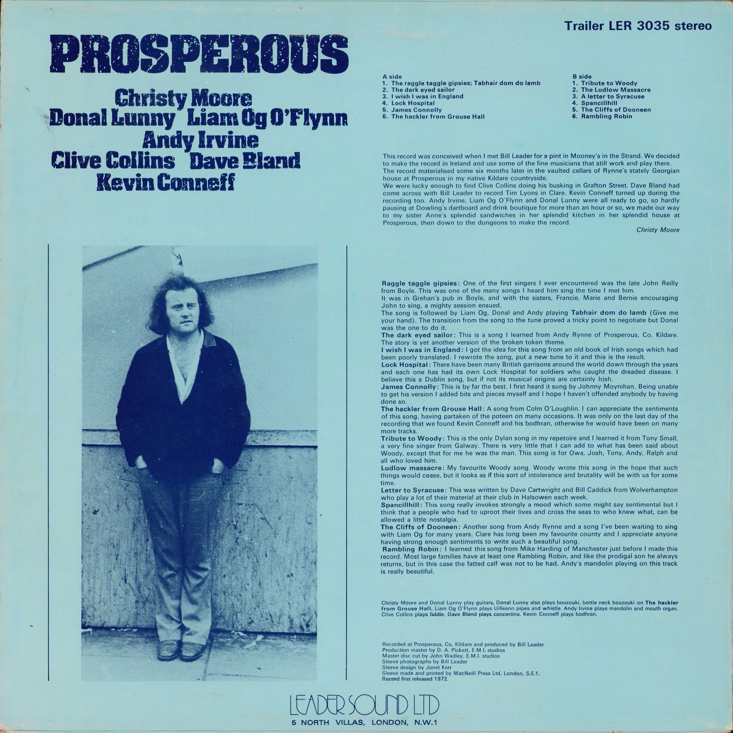 According to Alistair Banfield: "The Christy Moore LP Prosperous had all the members of Planxty so could almost be considered a Planxty LP. It was recorded by the wonderful English recording engineer Bill Leader (who was also responsible for recording
