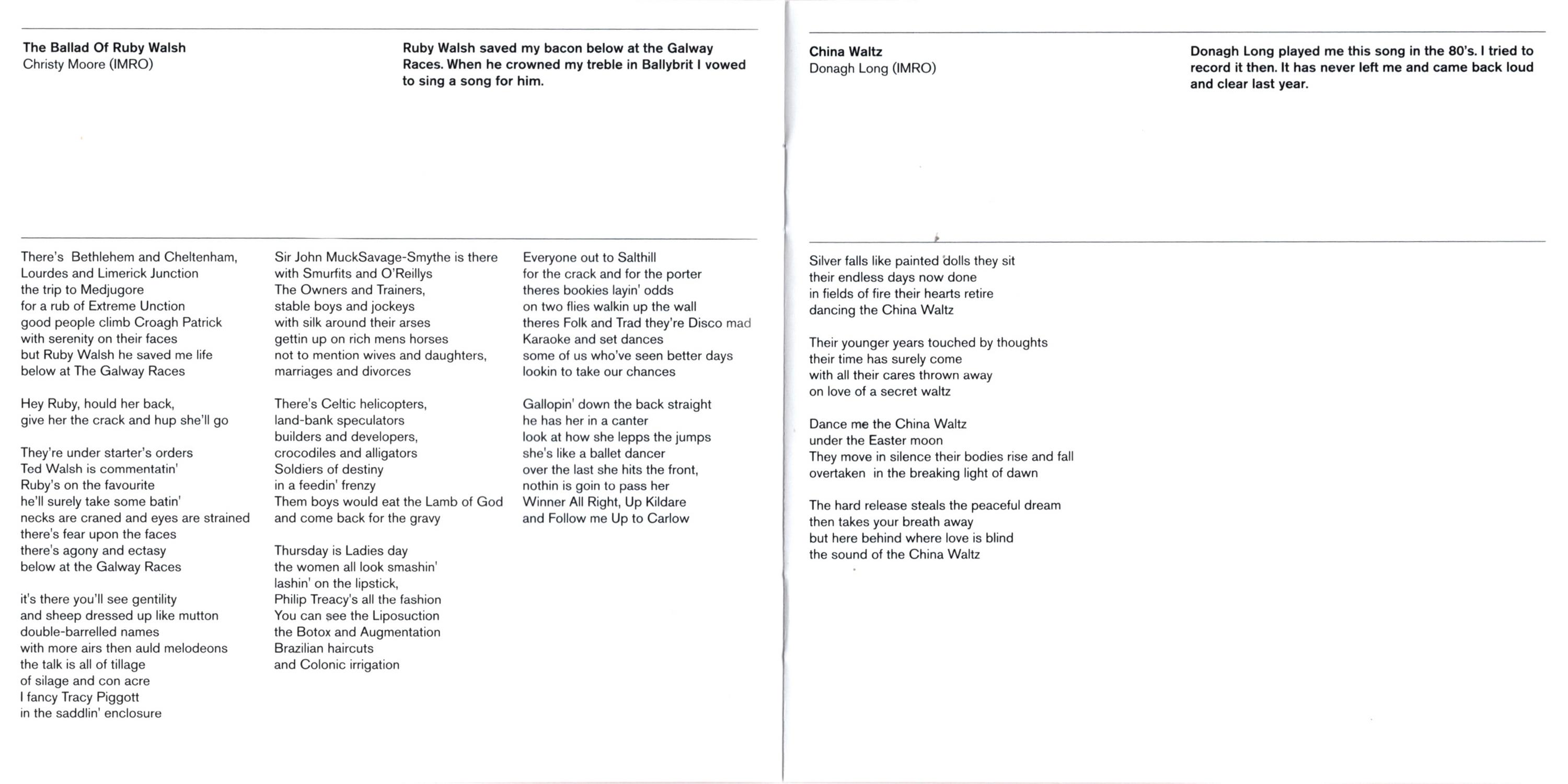 China Waltz — Donagh Long played me this song in the 80's. I tried to record it then. It has never left me and came back loud and clear last year.