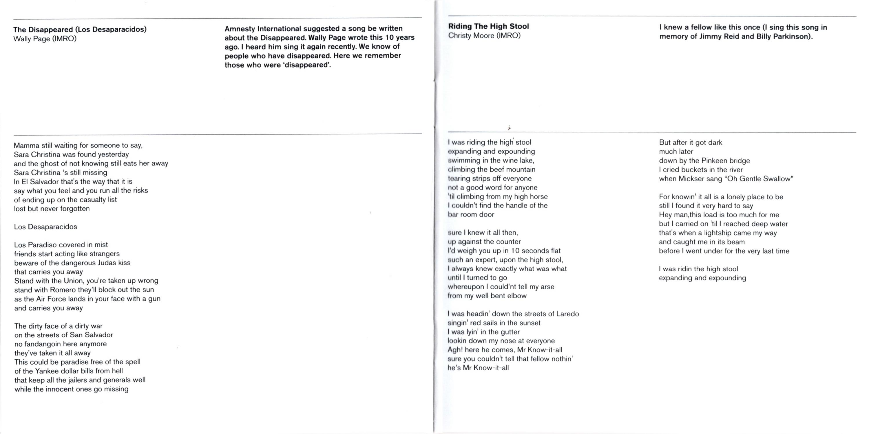 The Disappeared (Los Desaparacidos) — Amnesty International suggested a song be written about the Disappeared. Wally Page wrote this 10 years ago. I heard him sing it again recently. We know of people who have disappeared. Here we remember those who were 'disappeared'.