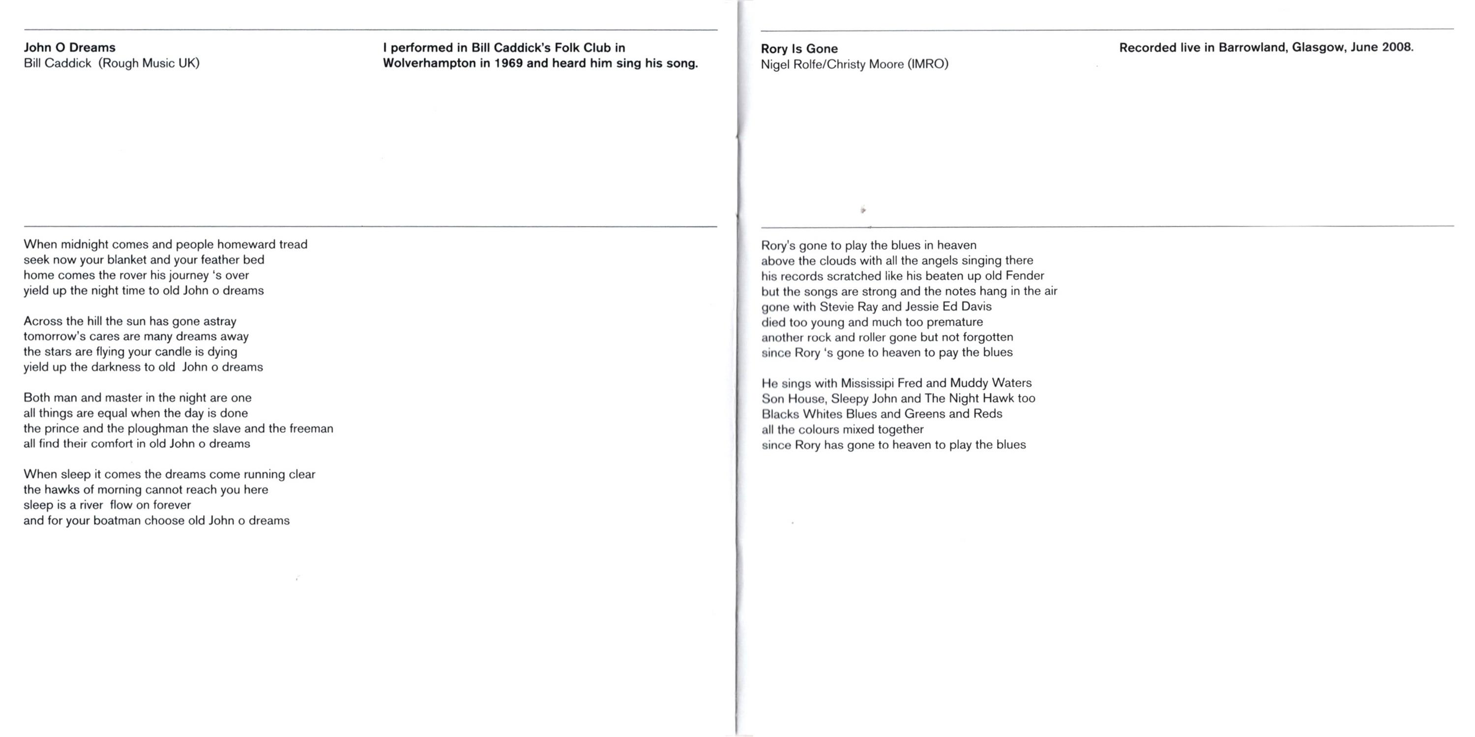 John O Dreams — I performed in Bill Caddick's Folk Club in Wolverhampton in 1969 and heard him sing his song.