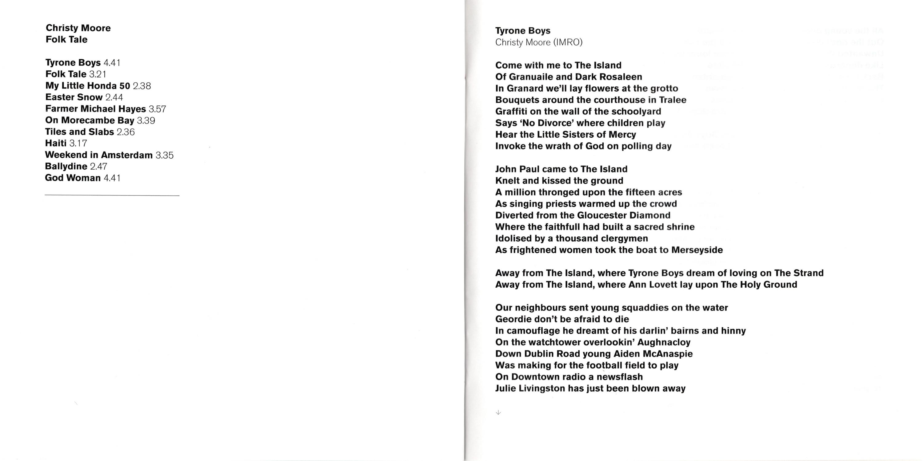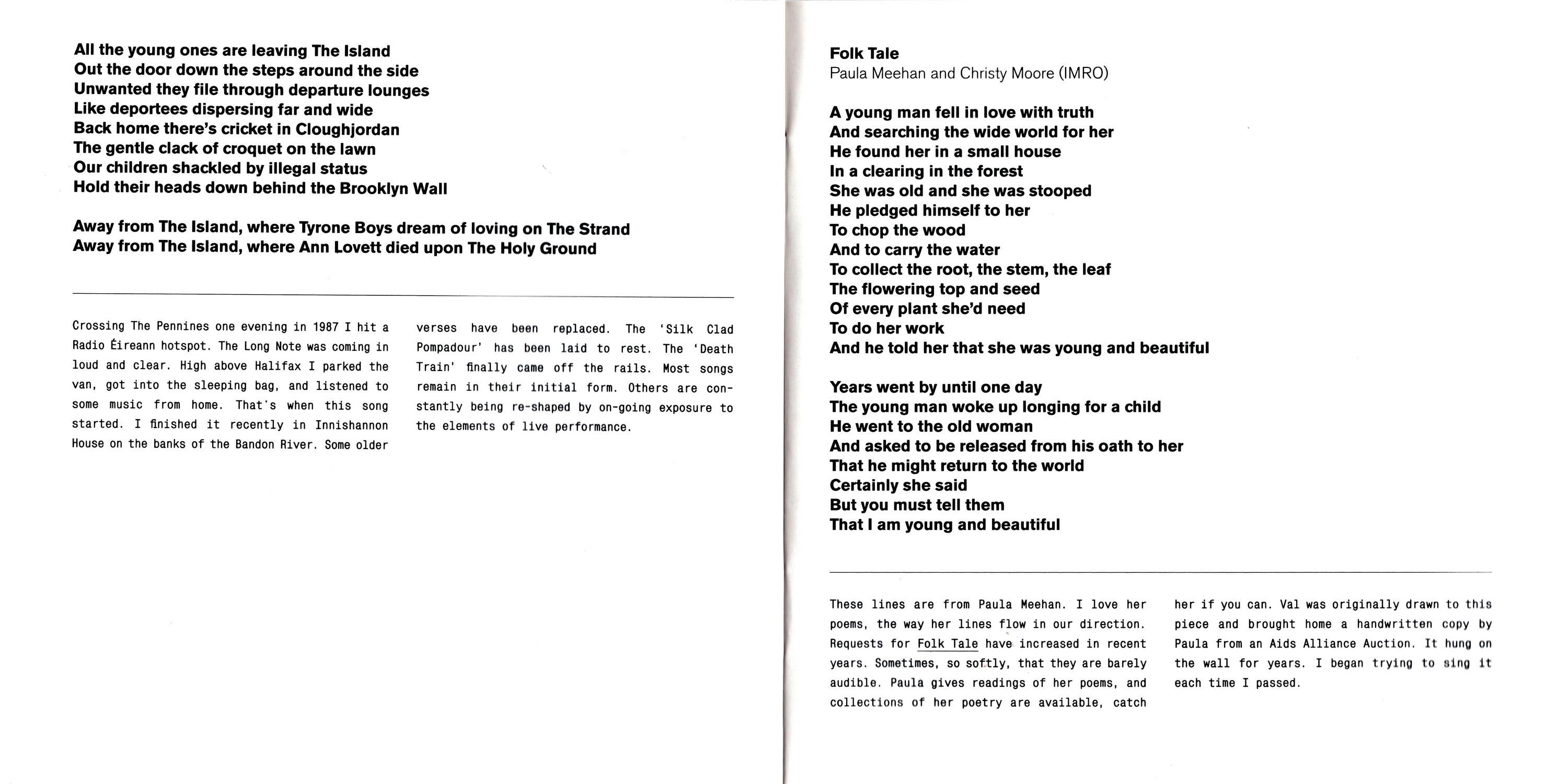 Tyrone Boys — Crossing The Pennines one evening in 1987 I hit a Radio Eireann hotspot. The Long Note was coming in loud and clear. High above Halifax I parked the van. got into the sleeping bag, and listened to some music from. That's when this song started. I finished it recently in Innlshannon House on the banks or the Bandon River. Some older verses nave been replaced. The 'Silk Clad Pompadour' has been laid to rest. The 'Death Train' finally case off the rails. Most songs remain in their initial form. Others are constantly being re-shaped by on-going exposure to the elements of live performance.