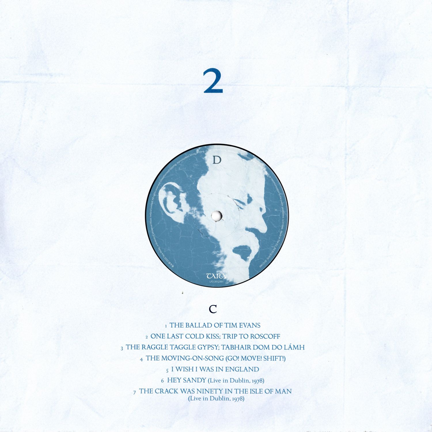 There are six cuts included here, remastered from the original quarter-inch tape. TIPPIN' IT UP TO NANCY is a traditional song with Christy accompanied by Dónal on bodhrán. The Ewan MacColl / Peggy Seeger song THE BALLAD OF TIM EVANS and the traditional Kerry song HOME BY BEARNA are both given the full band treatment. Also from this album is a version of Gail Collins and Felix Pappalardi's (of American rock band Mountain) ONE LAST COLD KISS where we hear that convergence of folk and rock music in full effect with Faulkner's electric guitar and Robbie Brennan's drums rubbing shoulders with the acoustic instruments and Kevin Burke's fiddle sounding positively European. The MOVING-ON-SONG (GO! MOVE! SHIFT!) by Ewan MacColl, part of a set of songs he wrote about the nomadic lives of Travellers, is a beautiful trad-folk rendition, as is a gentle version of Dave Goulder's JANUARY MAN.