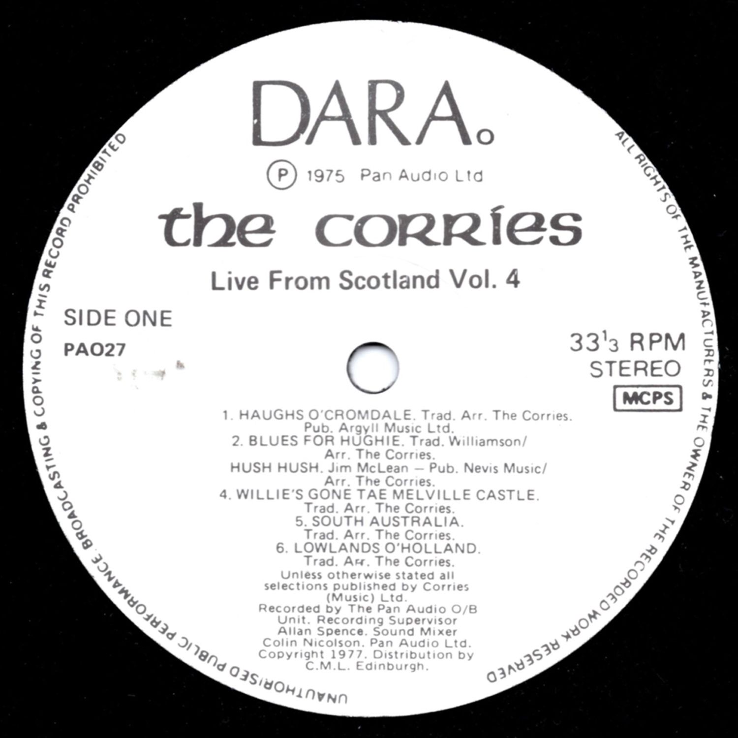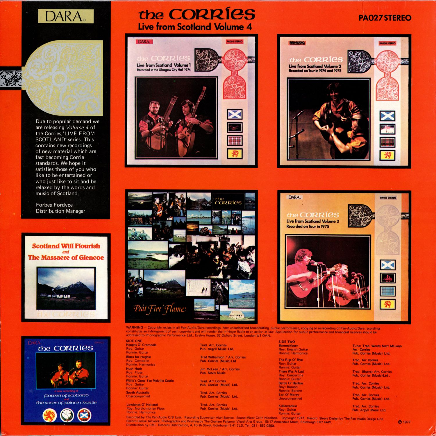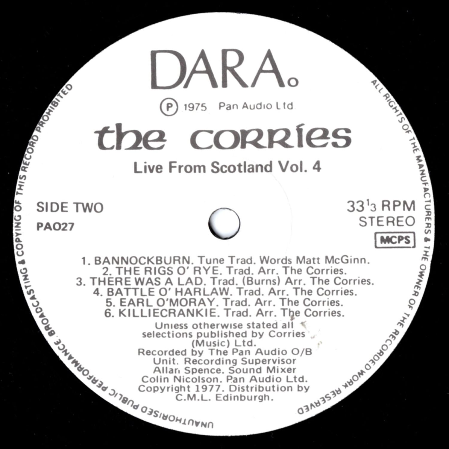 Due to popular demand we are releasing Volume 4 of the Corries, Live from Scotland series. This contains new recordings of new material which are fast becoming Corrie standards. We hope it satisfies those of you who like to be entertained or who just like to sit and be relaxed by the words and music of Scotland.
