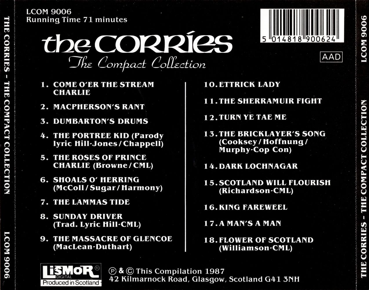 This compact disc is compiled from the live recordings of The Corries, taken from their most popular albums and containing 18 of their hits' — yes we know we've missed this one and that one and Aunty Elsie's favourite too, but modern technology can only do so much when faced with such an overwhelming quantity and quality of material.