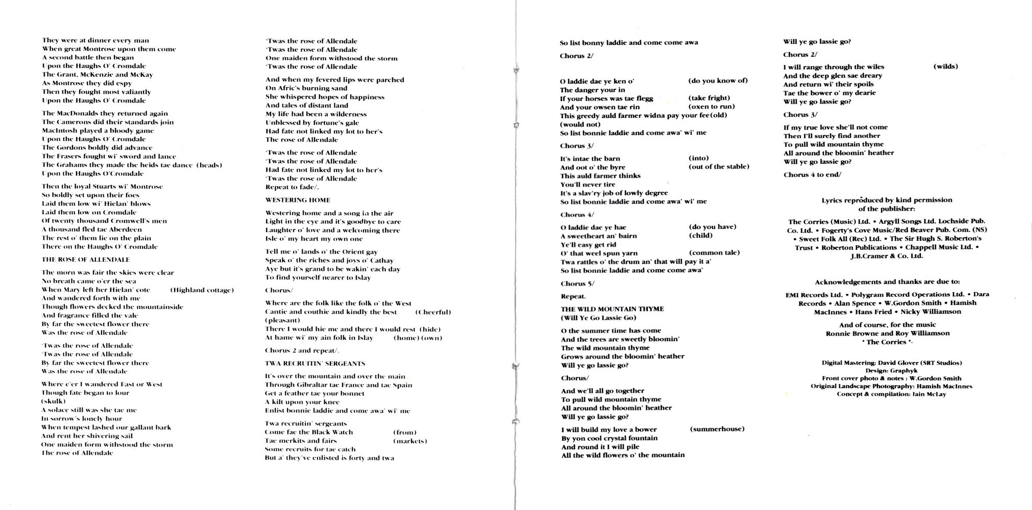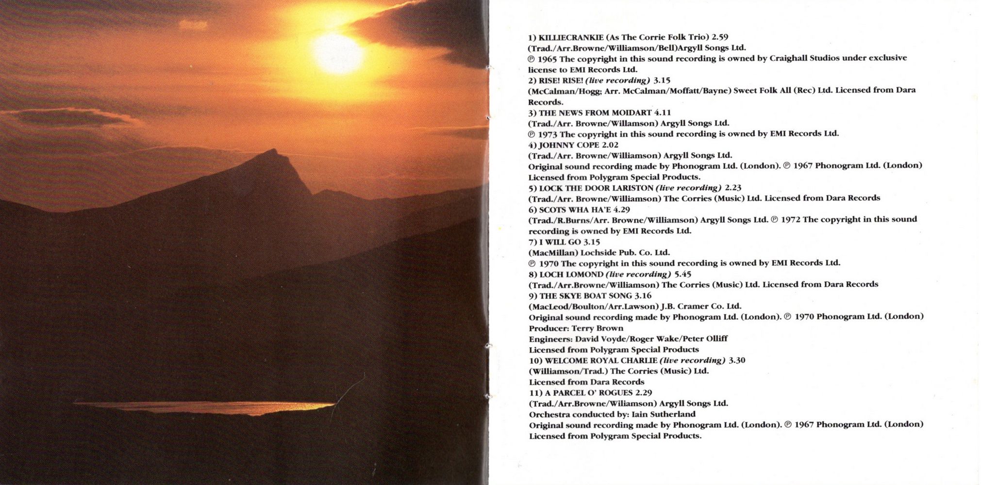 This album reflects, for the first time. The CORRIES complete recording career and although it has been some time coming, I trust you shall welcome its arrival.