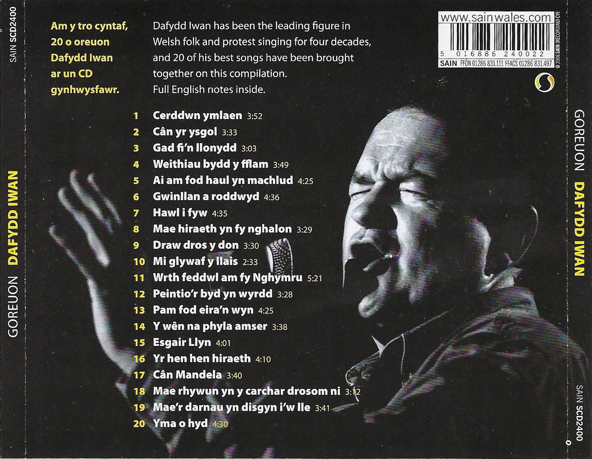 Peintio'r byd yn wyrdd (Painting the world green) — This was first released on an EP in 1970, at the height of the road-signs campaign. Before then, all official road-signs in Wales were in English only. After years of fruitless campaigning, we started on a direct-action campaign to obliterate English-only signs with green paint. There were hundreds of arrests, court-cases and imprisonments, culminating in the great Conspiracy Trial in Swansea in 1971. As Chair of Cymdeithas yr laith, I became for a time public enemy number one. But in many ways, this was the most effective and successful direct-action campaign in the recent history of Wales. The song, however, uses the metaphor of painting the world green to mean much more than bilingual signs; if we want a fairer, sustainable world, we must do something about it and refuse to let the powers that be walk all over us.