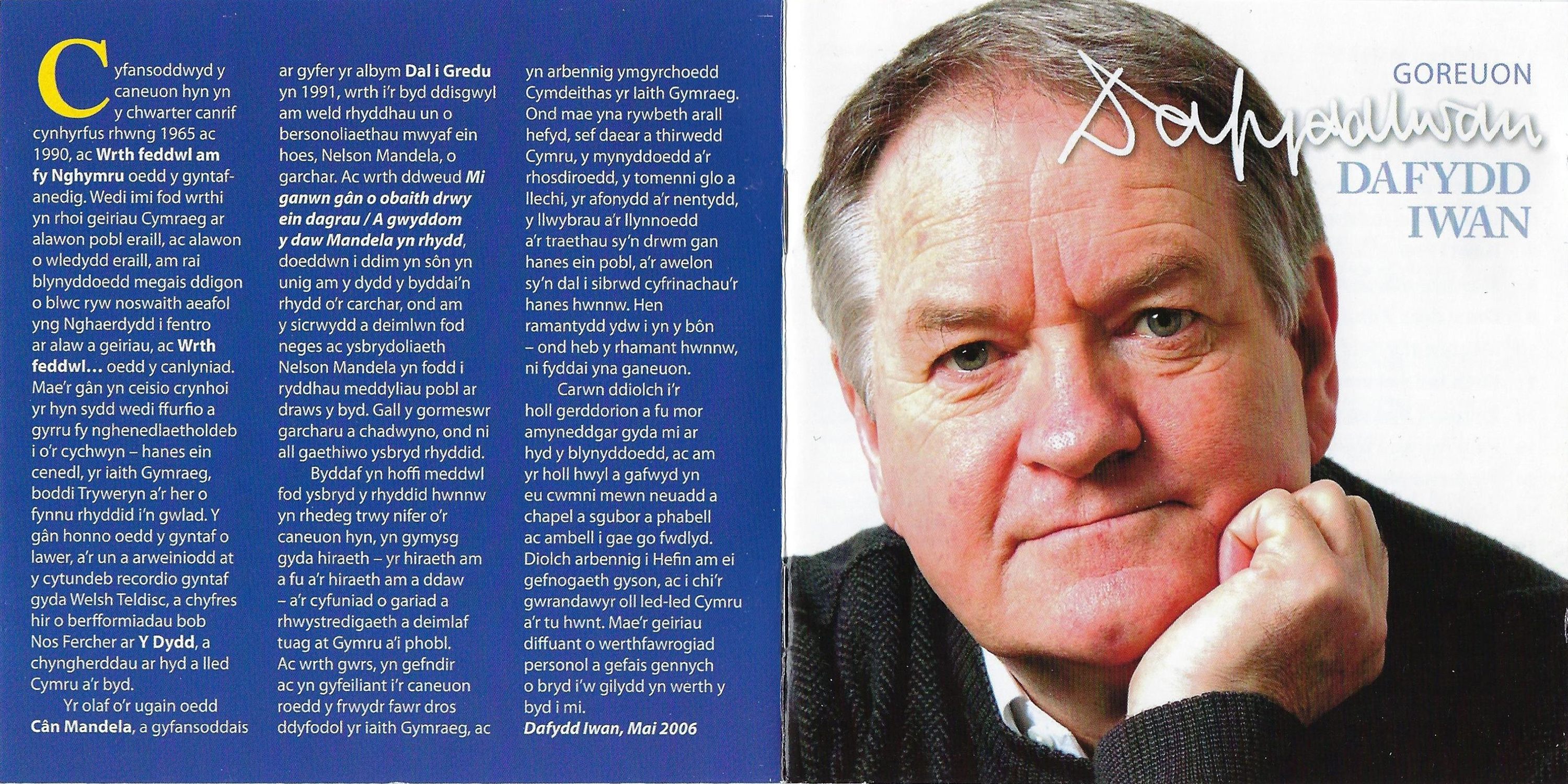 The last of the 20 to be composed was Cân Mandela Mandela's Song, written for my 1991 album Dal i Gredu, a song looking forwards to the release from prison of one of the great figures of our age, Nelson Mandela. And in saying We sing a song of freedom through our tears / And we know that Mandela will be free, I was not merely referring to his release from captivity, but to the certainty I felt that Mandela's message and inspiration was a means of freeing the minds of people throughout the world. The oppressor can imprison and enchain, but he cannot imprison the spirit of freedom.