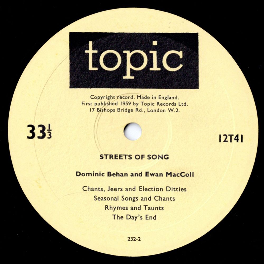 Of his early childhood, excellent commentary is given in this recording. After leaving school at the age of 14, he spent the next 10 years working at odd Jobs between periods of unemployment. While working as a street singer, he was picked up by a B.B.C. direct and given his first radio broadcast in a program called Music of the Streets. In 1935, MacColl began to devote an increasing amount of his time in writing programs for the B.B.C., including his first group of Folklore broadcasts. Included among his many folkmusic activities have been the collecting of folksongs for the B.B.C. archives, the production of regular folkmusic concerts, touring concert halls in England Scotland presenting folkmusic at a popular level and performing folksongs on radio broadcasts from every major city in Europe. He has also made numerous recordings of British folk songs available in most parts of the English-speaking world.
