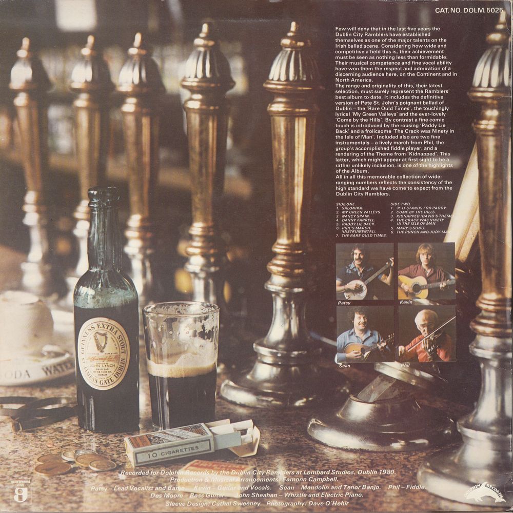 The range and originality of this, their latest selection, must surely represent the Ramblers' best album to date. It includes the definitive version of Pete St. John's poignant ballad of Dublin — the 'Rare Ould Times', the touchingly lyrical 'My Green Valleys' and the ever-lovely 'Come by the Hills'. By contrast a fine comic touch is introduced by the rousing 'Paddy Lie Back' and a frolicsome The Crack was Ninety in the Isle of Man'. Included also are two fine instrumentals—a lively march from Phil, the group's accomplished fiddle player, and a rendering of the Theme from 'Kidnapped'. This latter, which might appear at first sight to be a rather unlikely inclusion, is one of the highlights of the Album.