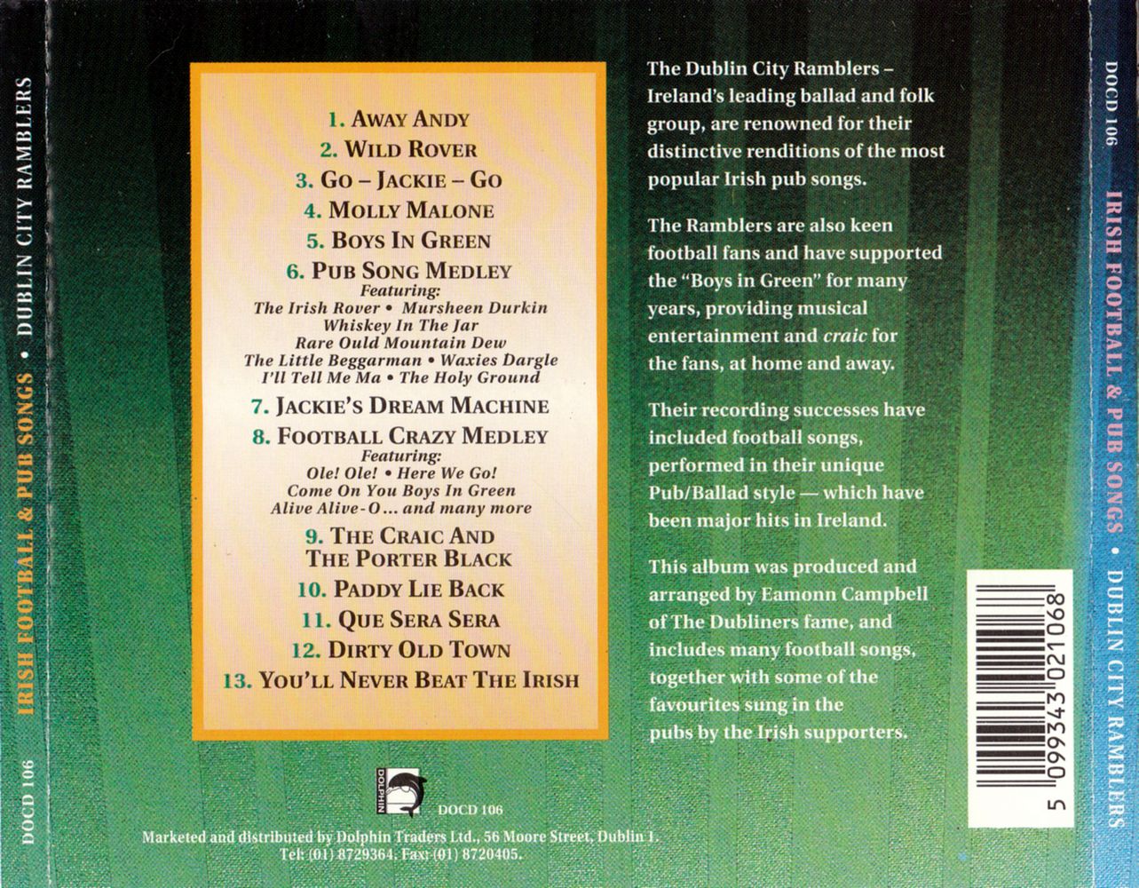 This album was produced and arranged by Eamonn Campbell of The Dubliners fame, and includes many football songs, together with some of the favourites sung in the pubs by the Irish supporters.