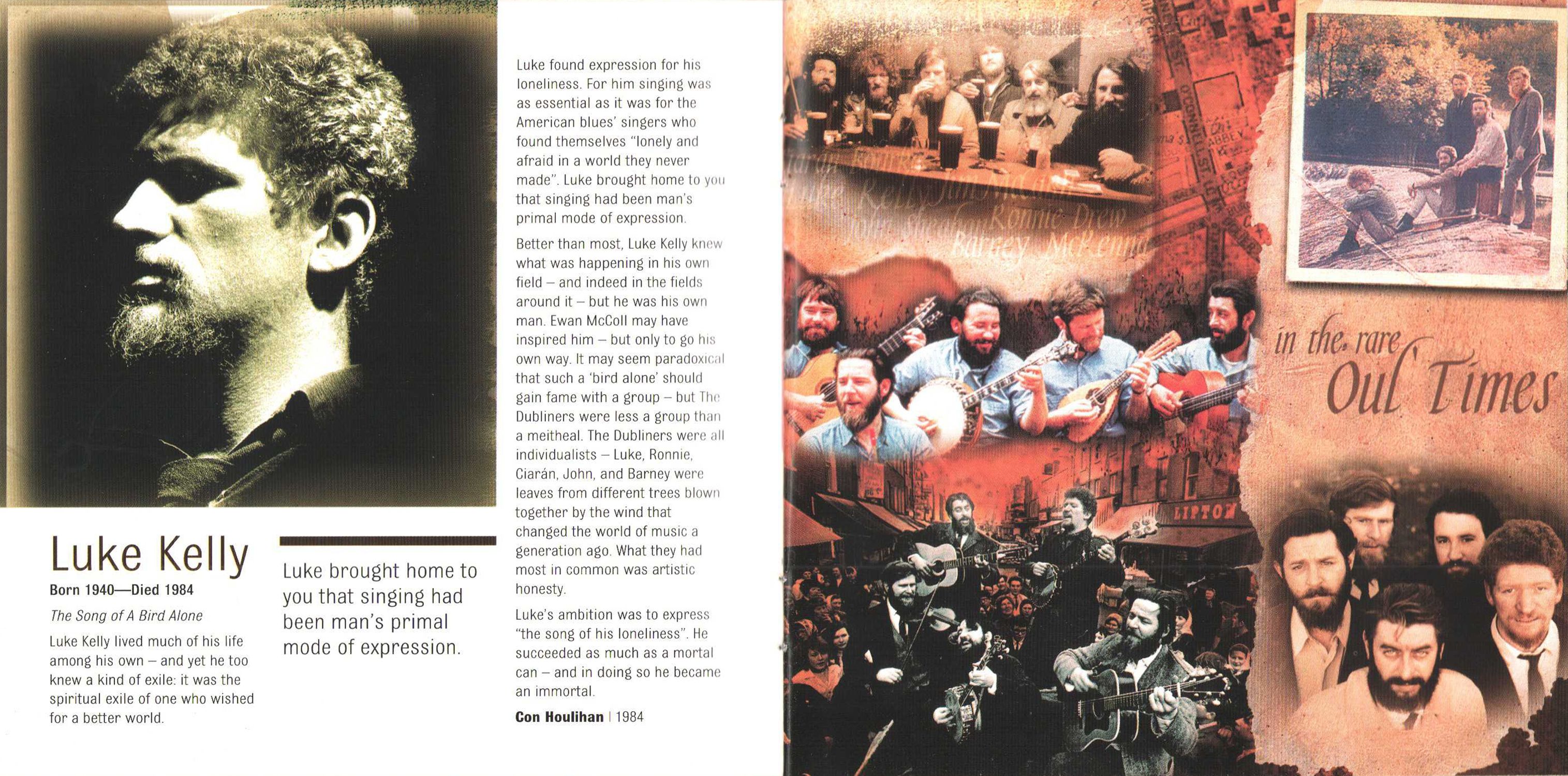 Better than most, Luke Kelly knew what was happening in his own field — and indeed in the fields around it — but he was his own man. Ewan McColl may have inspired him — but only to go his own way. It may seem paradoxical that such a 'bird alone' should gain fame with a group — but The Dubliners were less a group than a meitheal. The Dubliners were all individualists — Luke, Ronnie, Ciarán, John, and Barney were leaves from different trees blown together by the wind that changed the world of music a generation ago. What they had most in common was artistic honesty.