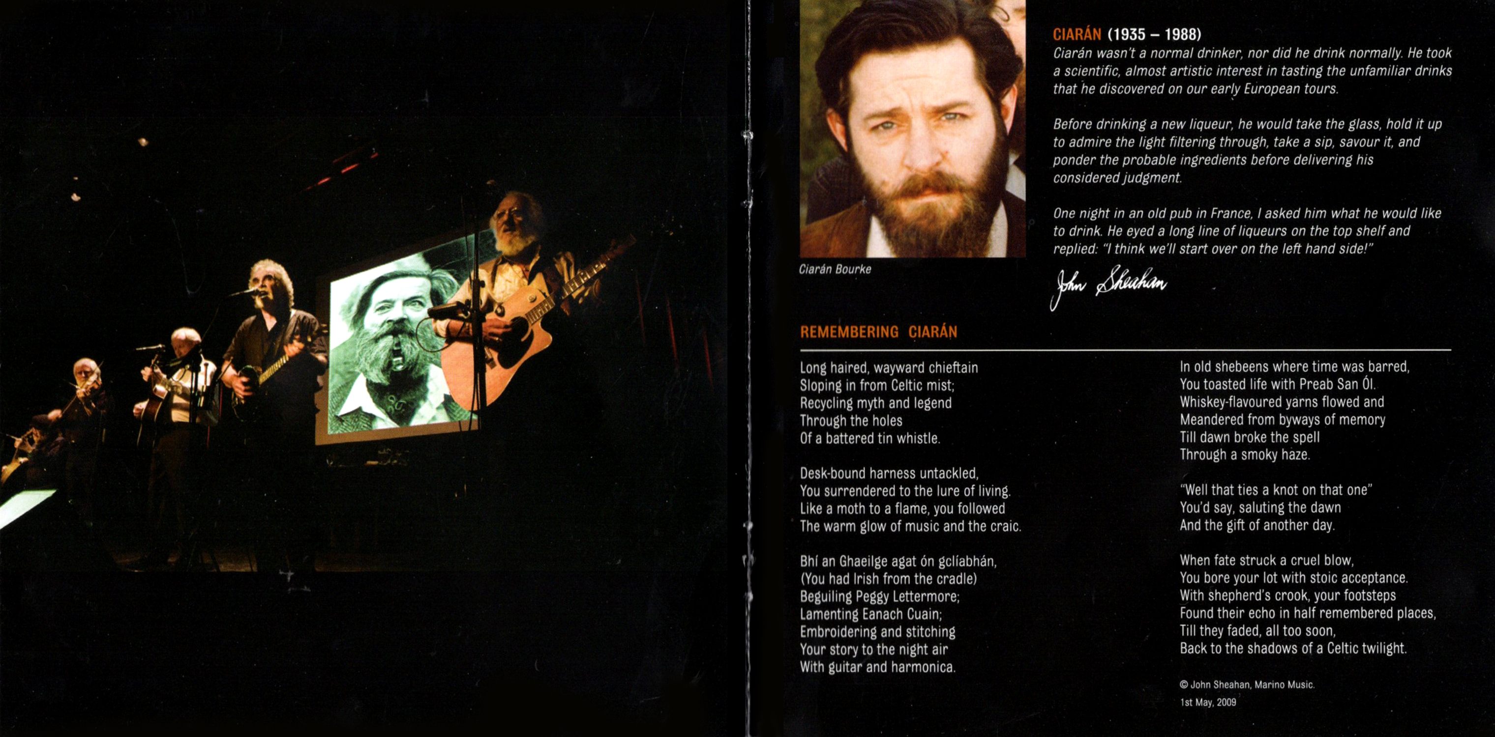 2009 was a special year of remembrance for The Dubliners. It marked the twenty-fifth anniversary of Luke Kelly's death; Ciarán Bourke's twenty-first anniversary, and signalled the passing of a year since Ronnie Drew's untimely departure.