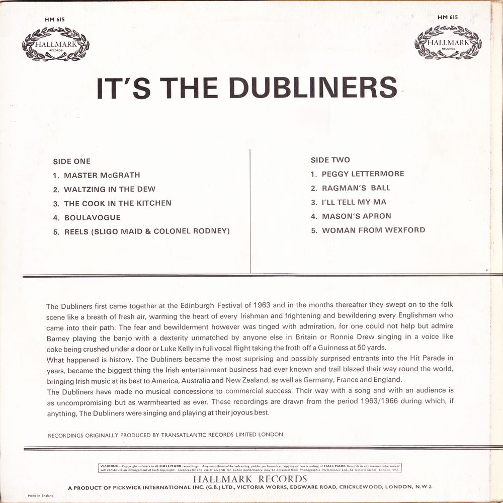 The Dubliners have made no musical concessions to commercial success. Their way with a song and with an audience is as uncompromising but as warmhearted as ever. These recordings are drawn from the period 1963/1966 during which, if anything, The Dubliners were singing and playing at their joyous best.