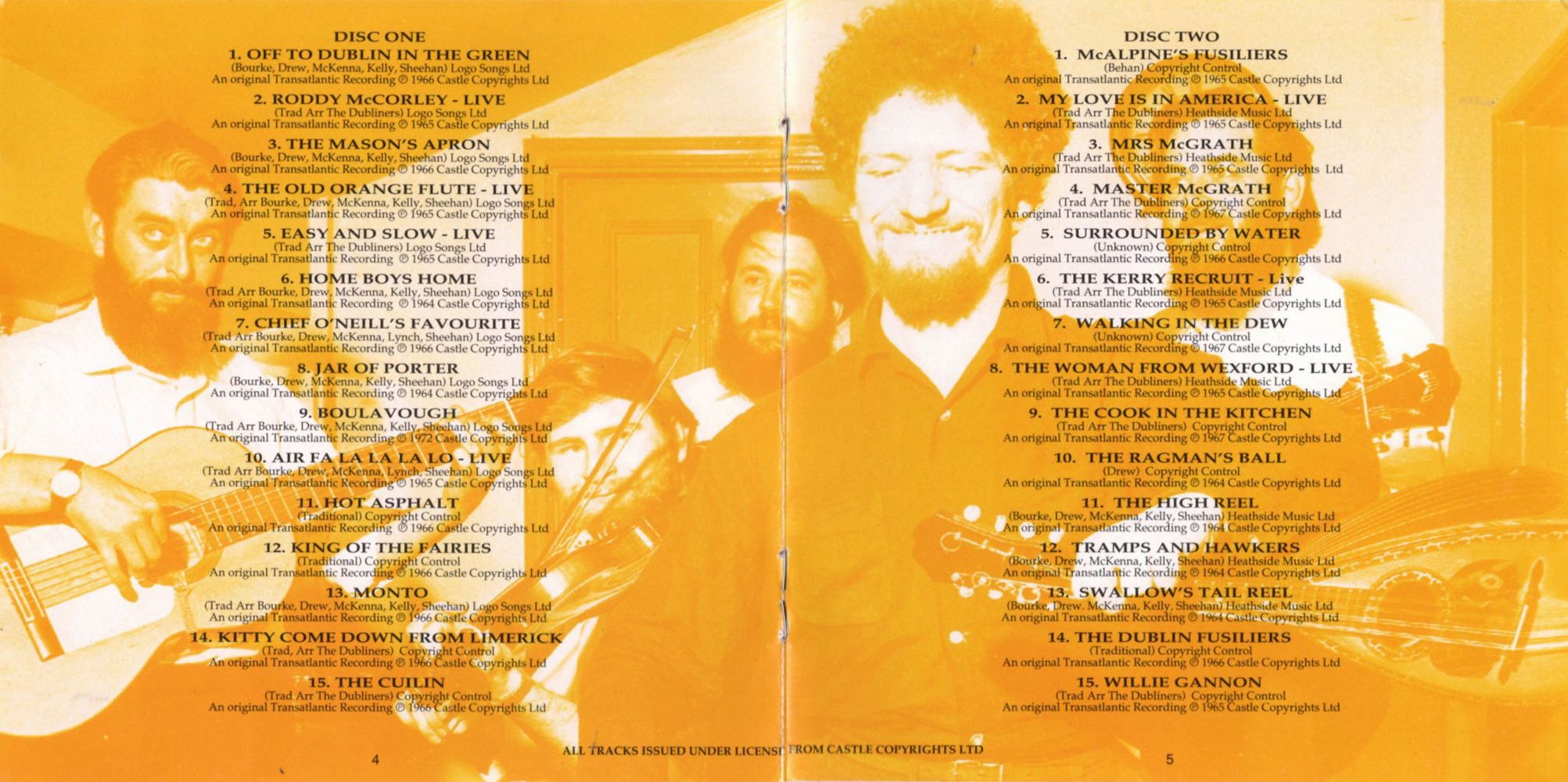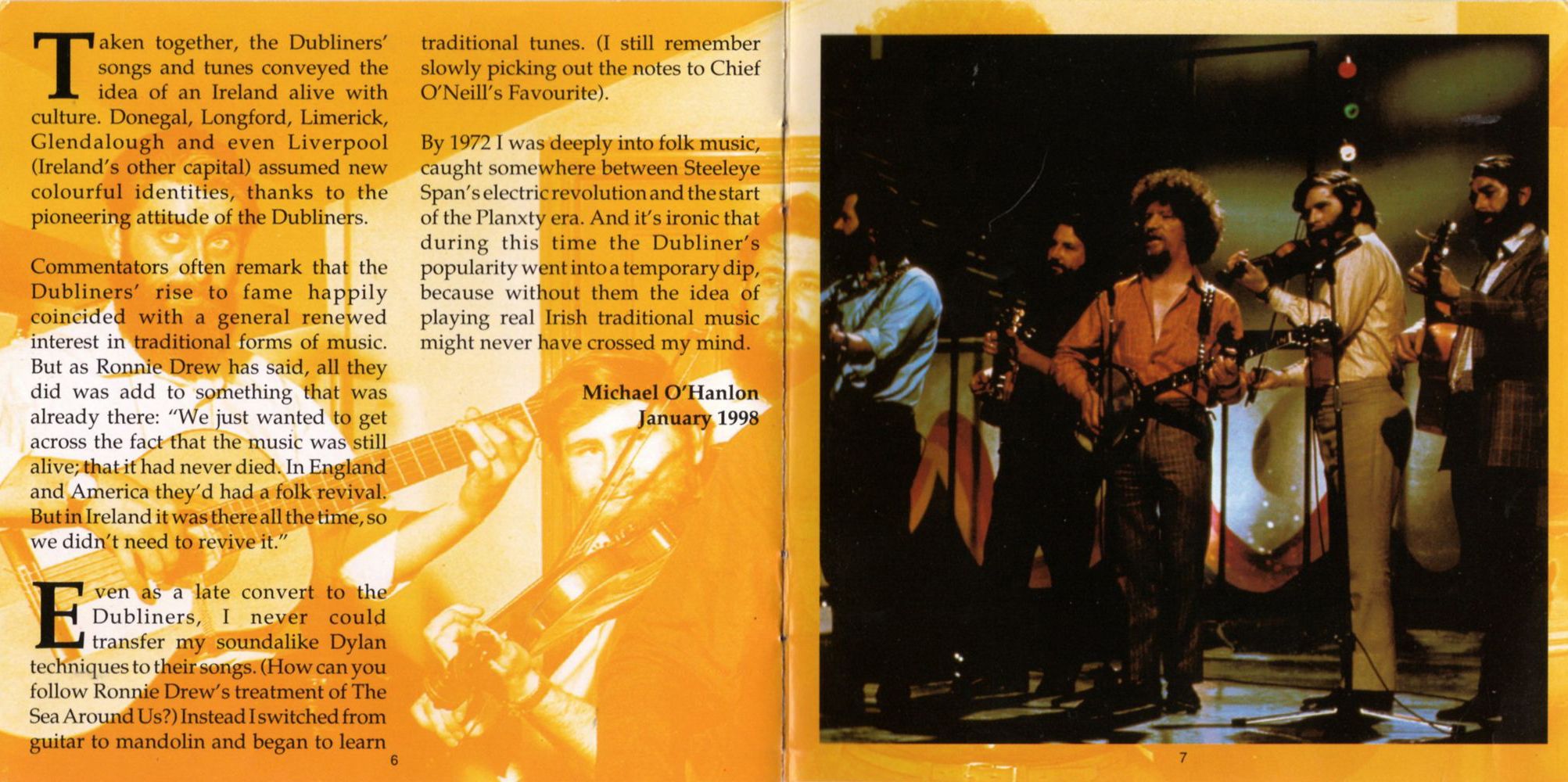 Most of the albums had been recorded in the mid-1960s when the Dubliners' style was at its most raw — and intense. In retrospect, that's what caught my attention. I had decided that I didn't like Irish folk music, but this was far removed from any I'd ever heard before. Those early Transatlantic — label discs, had a kind of spontaneous quality, as if someone had secretly recorded the Dubliners in a country Dublin bar. In other words, they sounded real.