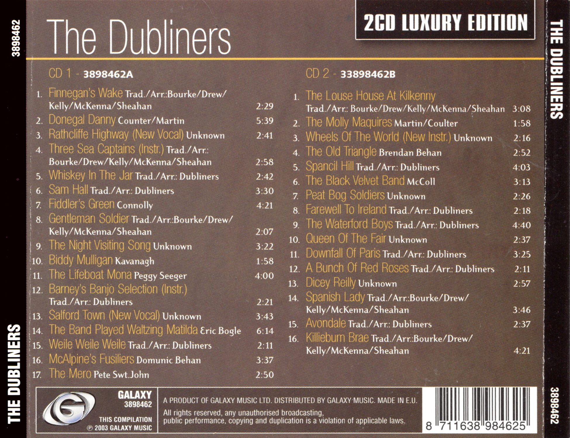 - Tracks: 1, 5, 15, 16 & 23 are from The Dubliners Live (1974, IRL)