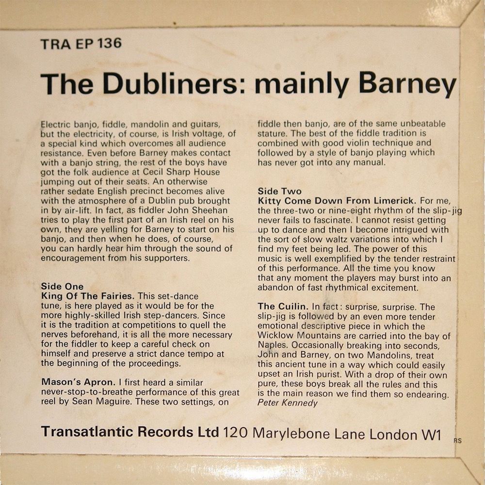 Electric banjo, fiddle, mandolin and guitars, but the electricity, of course, is Irish voltage, of a special kind which overcomes all audiences resistance. Even before Barney makes contact with a banjo string, the rest of the boys have got the folk audience at Cecil Sharp House jumping out of their seats. An otherwise rather sedate English precinct becomes alive with the atmosphere of a Dublin pub brought in by air-lift, in fact, as fiddler John Sheahan tries to play the first part of an Irish reel on his own, they are yelling for Barney to start on his banjo, and then when he does, of course, you can hardly hear him through the sound of encouragement from his supporters.