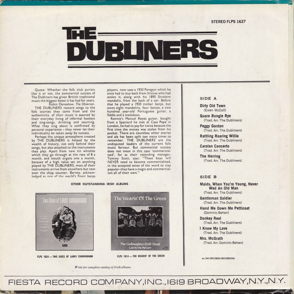 THE DUBLINERS restore songs to the folk sources they came from and the authenticity of their music is assured by their everyday living of informal hooleys and sing-songs, drinking and courting. What they sing about is confirmed by personal experience — they never let their individuality be taken away by success.