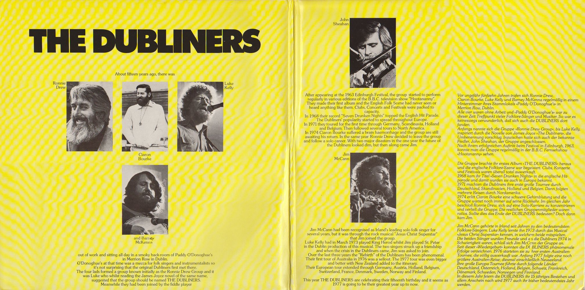 Over the last three years the "Rebirth" of the Dubliners has been phenomenal. Their first tour of Australia in 1976 was a sellout. The 1977 tour was even bigger and better with New Zealand added to the itinerary.