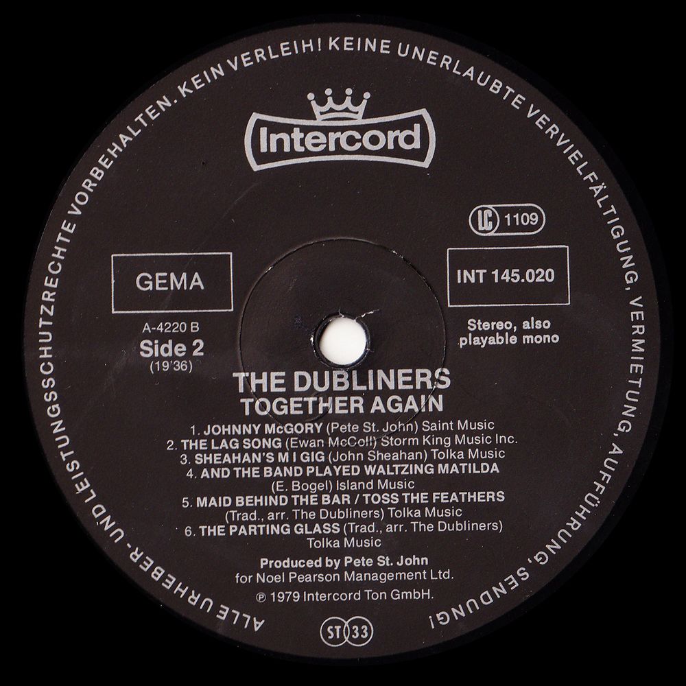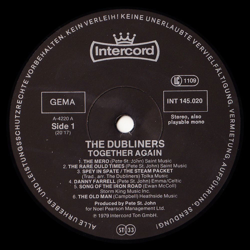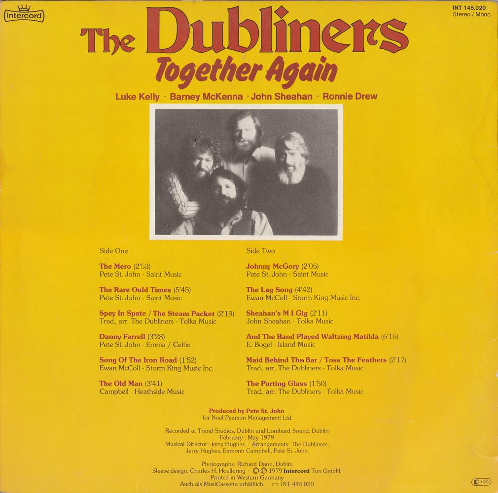 - Arrangements: The Dubliners, Jerry Hughes, Eamonn Campbell, Pete St. John