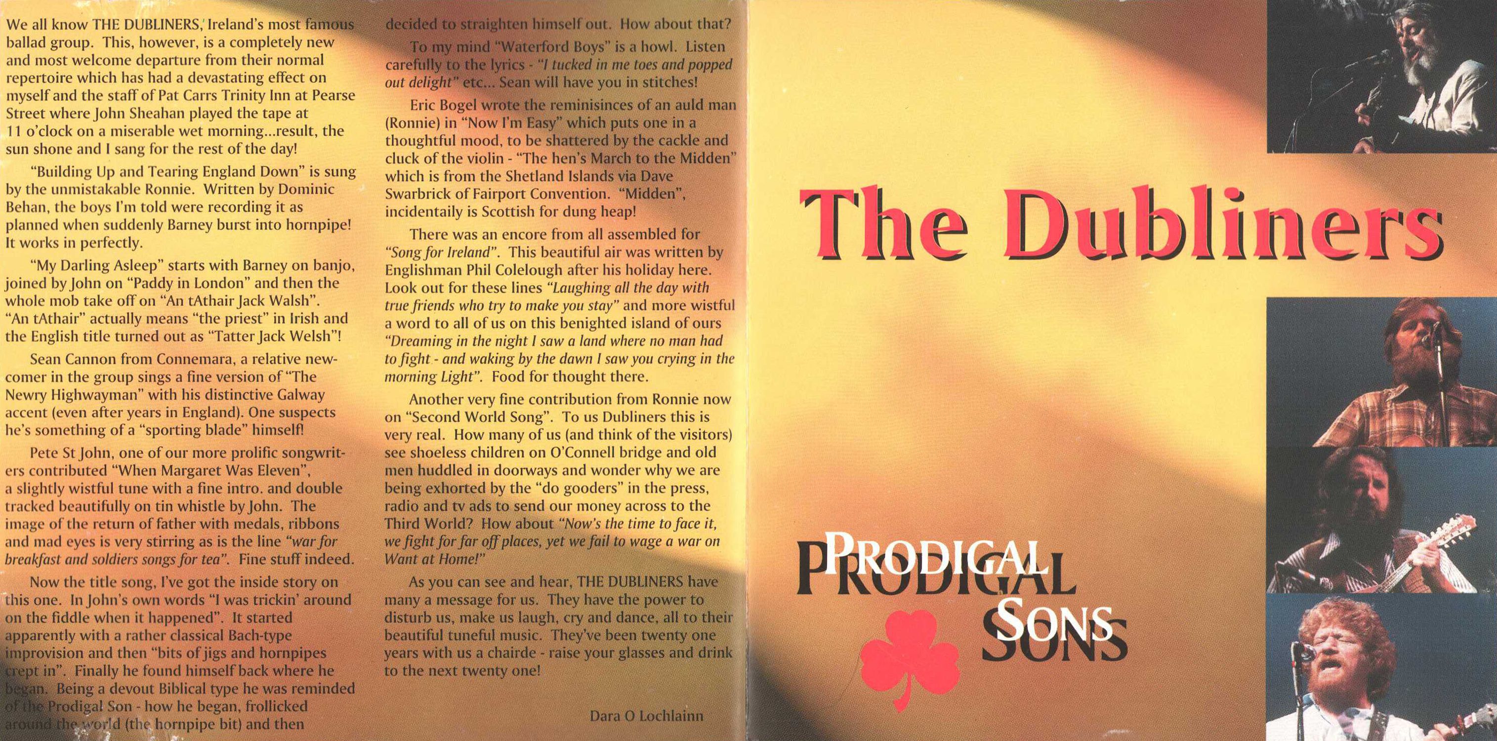 We all know the Dubliners, Ireland's most famous ballad group. This, however, is a completely' new and most welcome departure from their normal repertoire which has had a devastating effect on myself and the staff of Pat Carrs Trinity Inn at Pearse Street where John Sheahan played the tape at 11 o'clock on a miserable wet morning…Result: The Sun shone and I sang for the rest of the day!