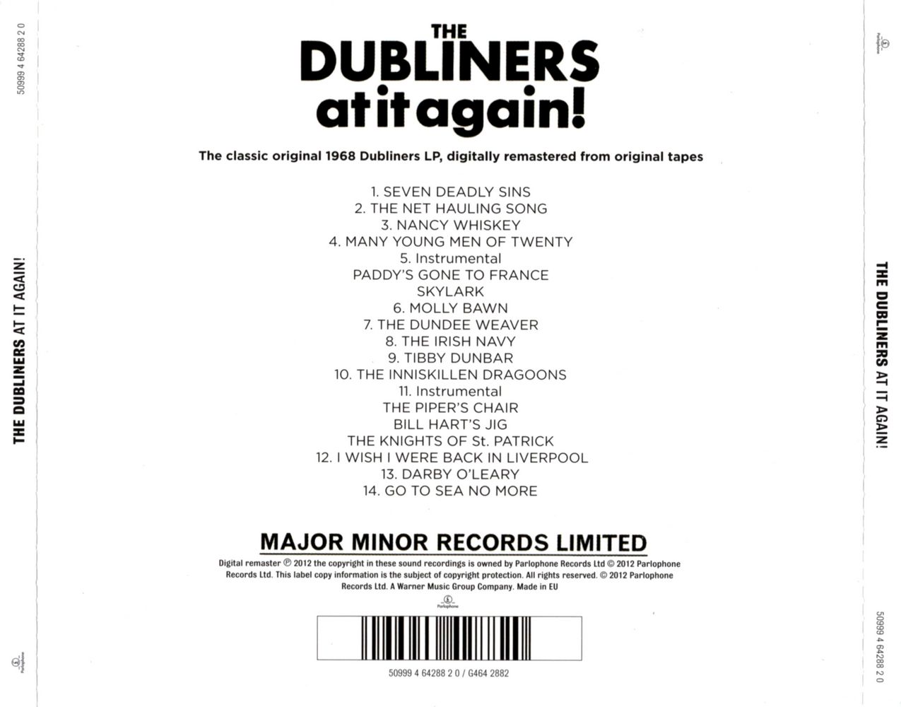 Among the songs included on 'At It Again' are band favourite 'Seven Deadly Sins', (based on the traditional 'Kissin's Nae Sin' with the chorus a variant of 'The Jolly Beggerman') which was used as the album title for a previous reissue, and 'The Irish Navy', a satirical song with lyrics by Ronnie Drew & Luke Kelly and music by John Sheahan, Barney McKenna and Ciarán Bourke