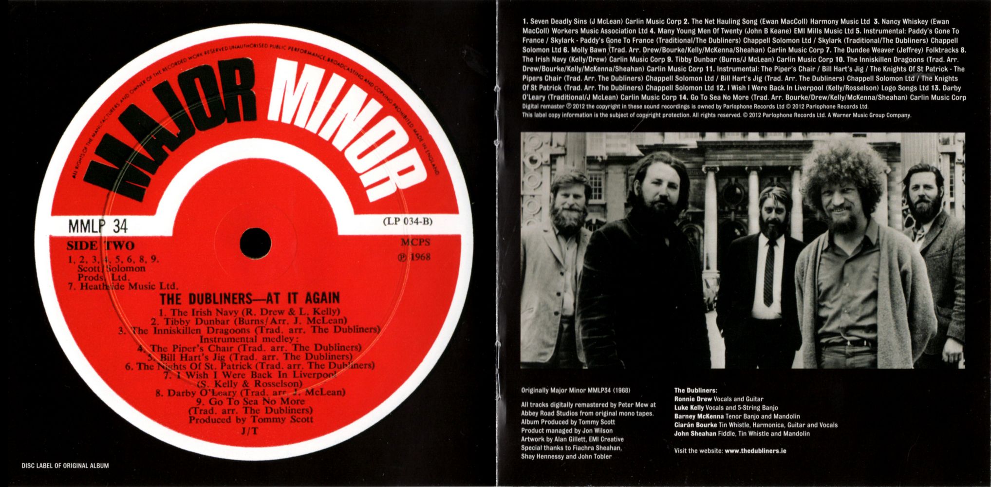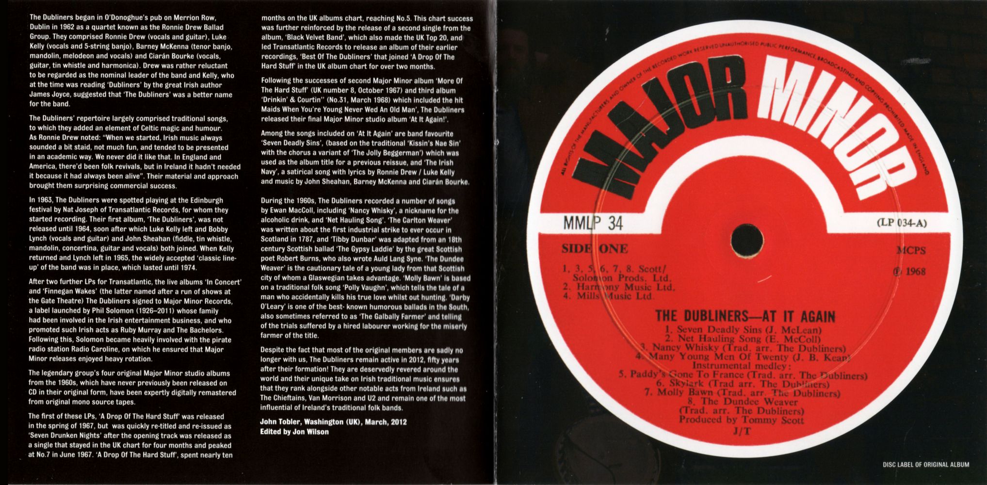 Following the successes of second Major Minor album More Of The Hard Stuff (UK number 8, October 1967) and third album 'Drinkin' & Courtin'' (No. 31, March 1968) which included the hit 'Maids When You're Young Never Wed An Old Man', The Dubliners released their final Major Minor studio album 'At It Again!'.