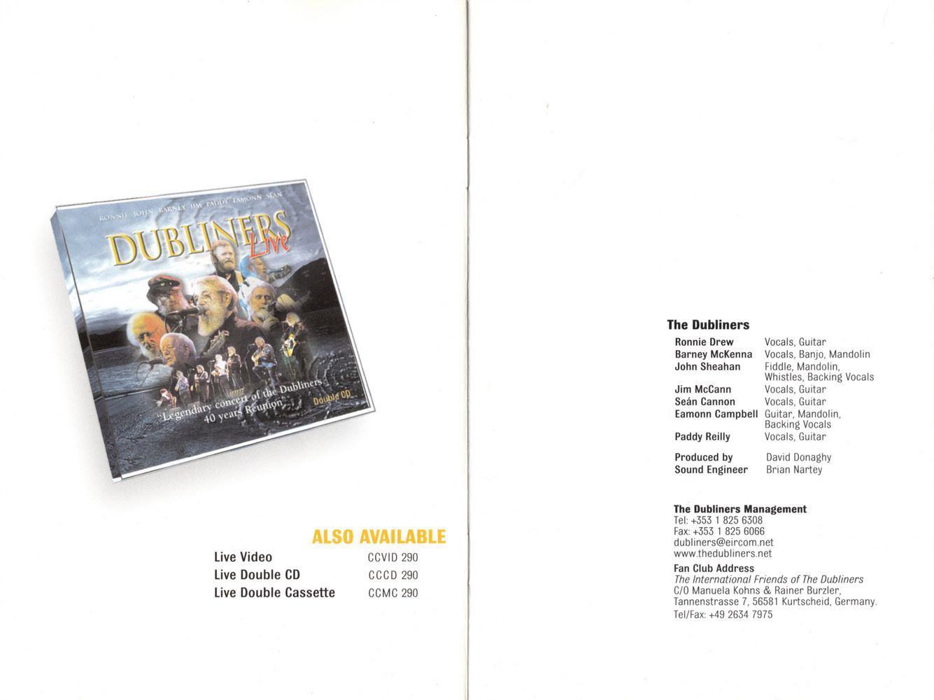 Shortly afterwards, with the opportunity to take part in live concerts, Eamonn cut down on his studio work and joined the Group on a full-time basis.