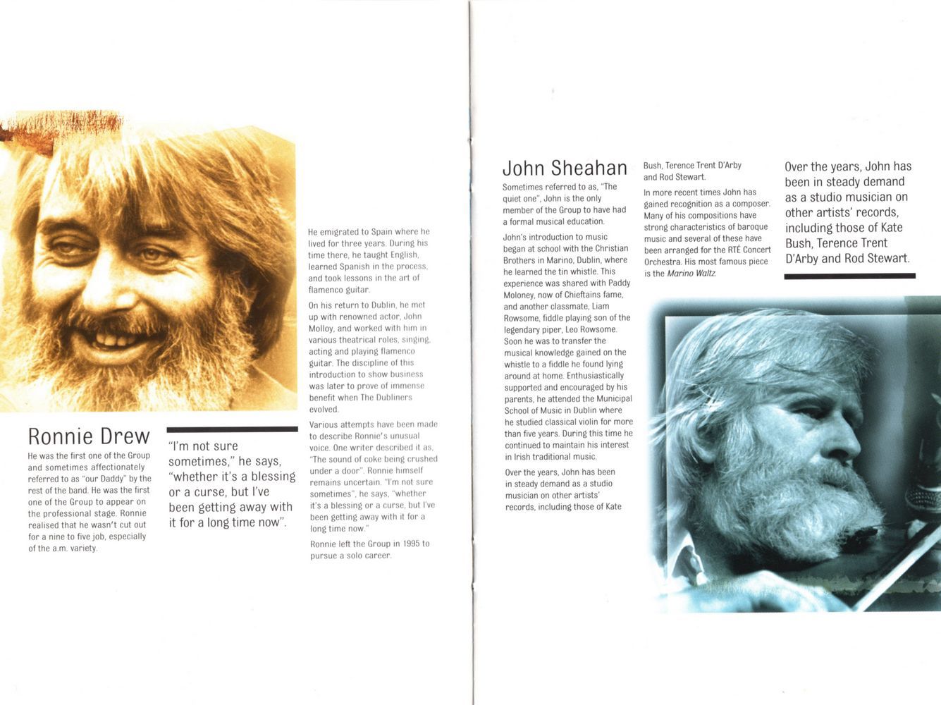 In the 60s, Ciarán Bourke was one of those rare people who chose the alternative life when it wasn't so fashionable. Ciarán loved the Irish language and it was from his grand voice that we first heard the haunting Se Fath mo Bhuartha. He was a fine musician too — tin whistle, harmonica and guitar. He was the melodic chord to Ronnie's soul songs and Luke's passion.