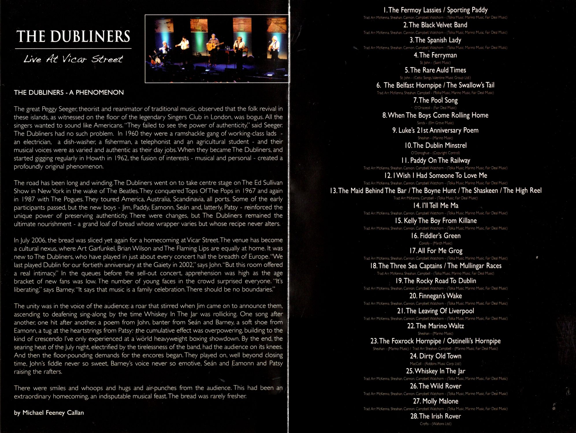 In July 2006, the bread was sliced yet again for a homecoming at Vicar Street. The venue has become a cultural nexus, where Art Garfunkel, Brian Wilson and The Flaming Lips are equally at home. It was new to The Dubliners, who have played in just about every concert hall the breadth of Europe. “We last played Dublin for our fortieth anniversary at the Gaiety in 2002," says John. “But this room offered a real intimacy." In the queues before the sell-out concert, apprehension was high as the age bracket of new fans was low. The number of young faces in the crowd surprised everyone. "It's liberating," says Barney. “It says that music is a family celebration. There should be no boundaries."