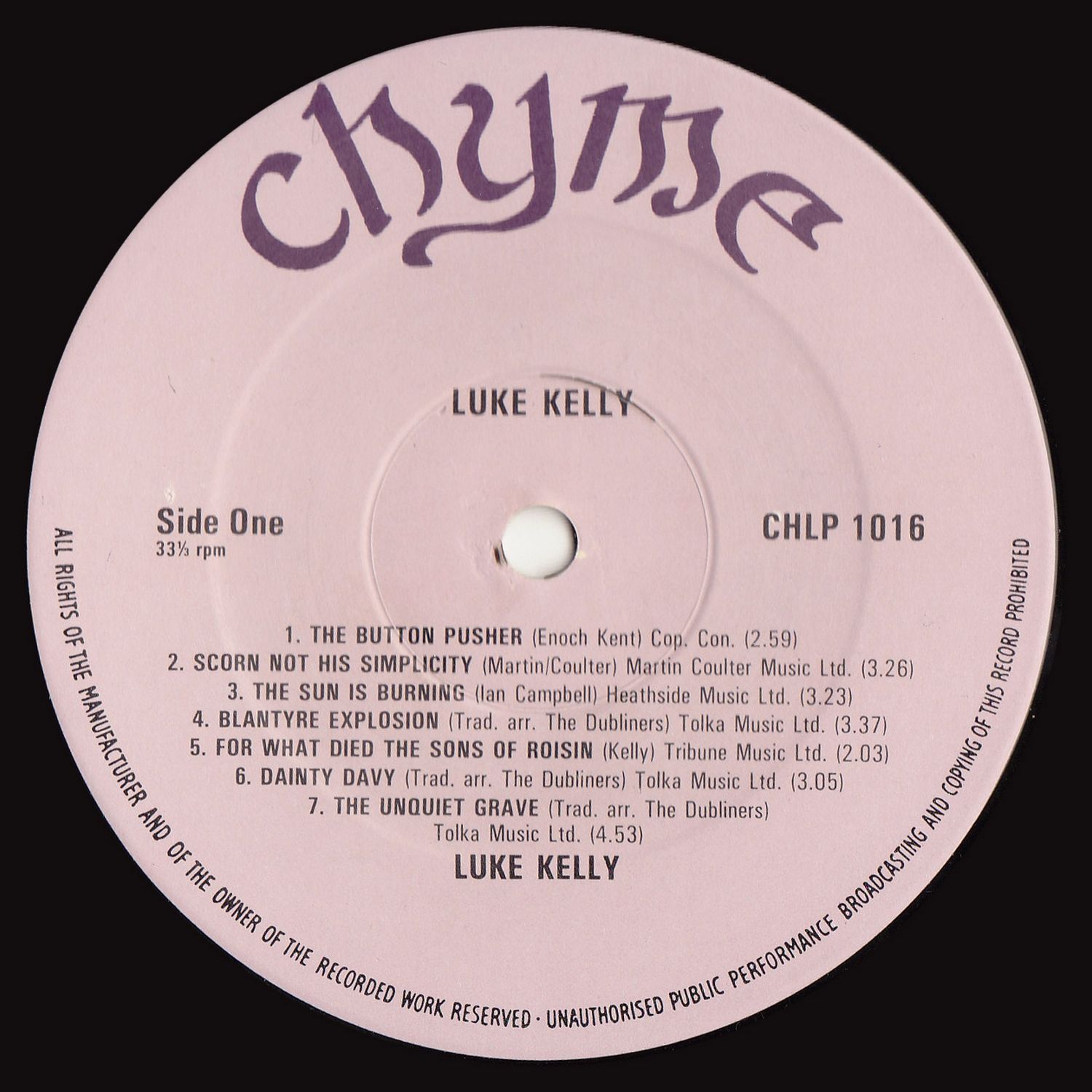 - 1981 - Chyme CHLP 1016 LP (IRL)