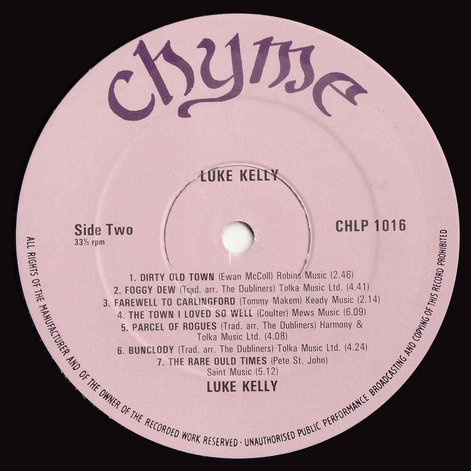 - Track: 6 is from At Home with the Dubliners (1969, IRL)