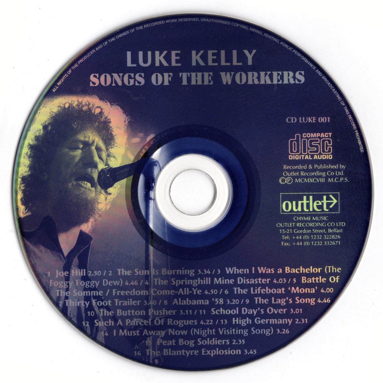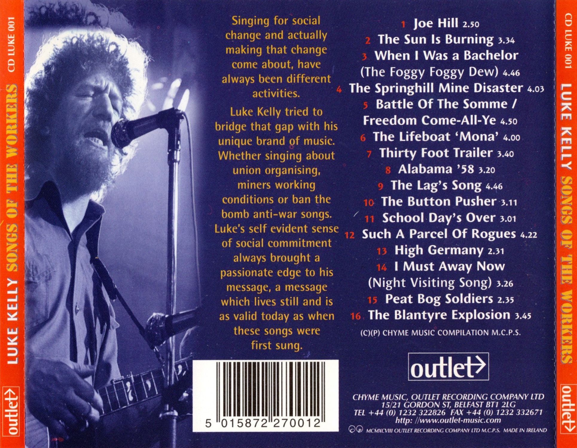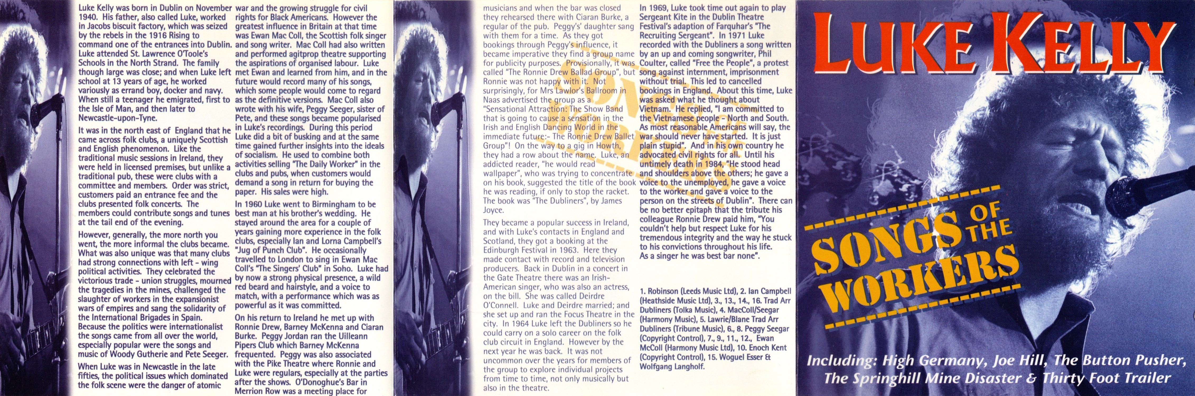 Luke Kelly tried to bridge that gap with his unique brand of music. Whether singing about union organising, miners working conditions or ban the bomb anti-war songs. Luke’s self evident sense of social commitment always brought a passionate edge to his message, a message which lives still and is as valid today as when these songs were first sung.