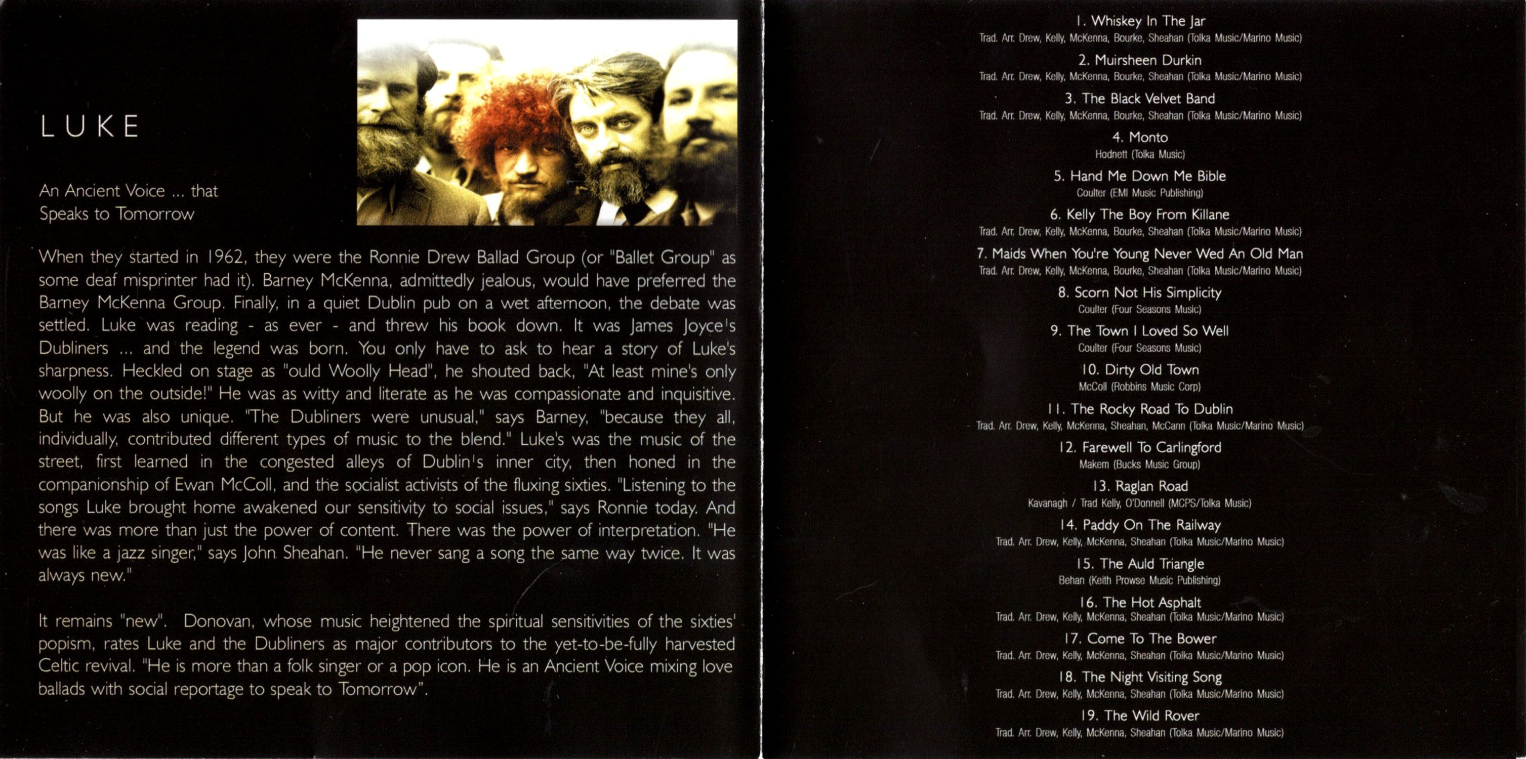It remains "new". Donovan, whose music heightened the spiritual sensitivities of the sixties' popism, rates Luke and the Dubliners as major contributors to the yet-to-be-fully harvested Celtic revival. "He is more than a folk singer or a pop icon. He is ah Ancient Voice mixing love ballads with social reportage to speak to Tomorrow".