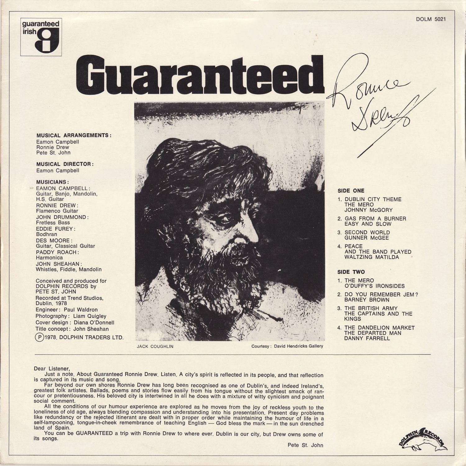Just a note. About Guaranteed Ronnie Drew. Listen. A city's spirit is reflected in its people, and that reflection is captured in its music and song.